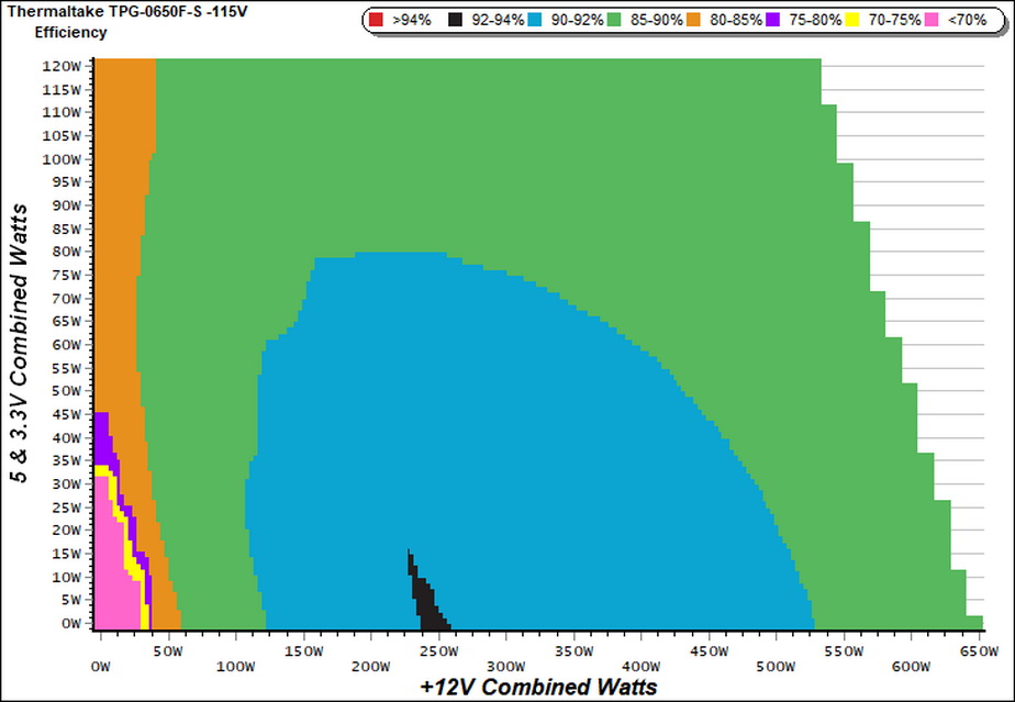 The 650W model also surpasses 92% efficiency, however this operating region is smaller compared to its big brother.