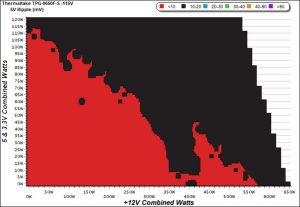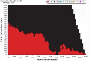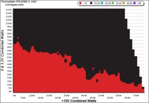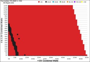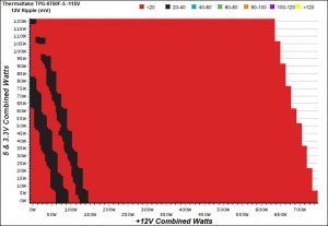 To generate the following charts, we set our loaders to auto mode through our custom-made software before trying more than 1500 possible load combinations with the +12V, 5V, and 3.3V rails. The load regulation deviations in each of the charts below are calculated by taking the nominal values of the rails (12V, 5V, and 3.3V) as point zero. The ambient temperature is between at 30°C (86°F) to 32°C (89.6°F).