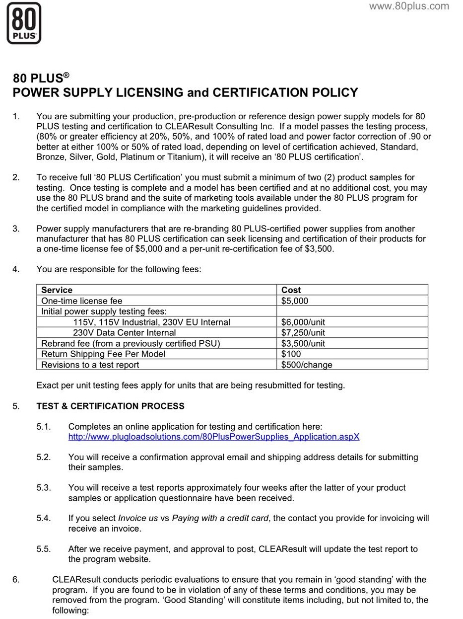 The document that Igor's Lab received (shown above) allows us to get an idea of how this system works. The first registration of a PSU model from the manufacturer into the 80 Plus certification program costs $5000. After that, comes the “initial power supply testing”, costing about $6000/unit for 115V, 115V Industrial and 230V EU Internal PSUs ($2000/unit formerly), and $7250/unit if we are talking about a 230V data centre internal PSU.