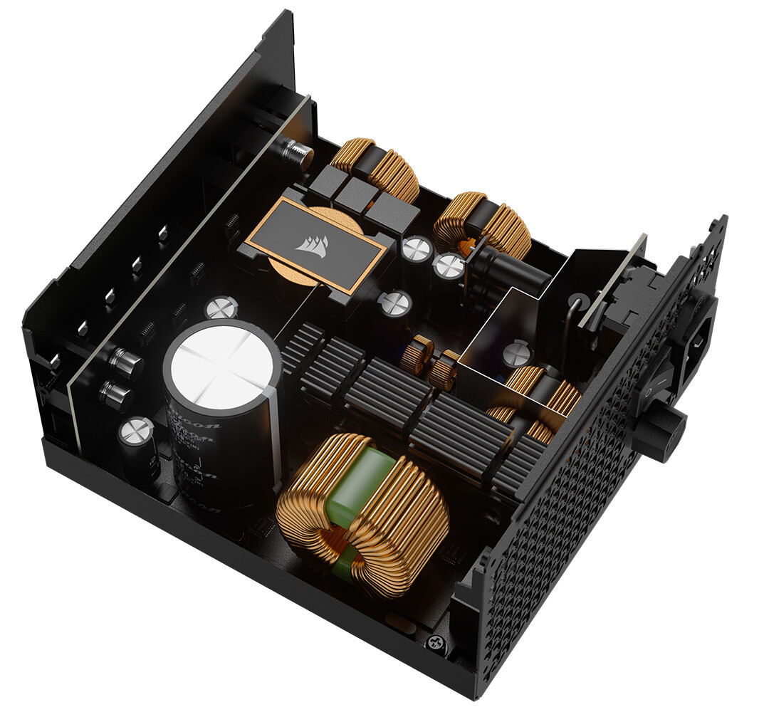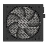 Corsair's new RMx series uses a PWM-controlled 140mm FDB fan, incorporating a half-dome construction to reduce surface friction, resulting in quieter operation and an extended lifespan. Moreover, the fan's specially designed curve enables fanless operation at low loads and minimal noise as power demand increases. Users also have the option to manually adjust the fan speed using the knob at the rear of the unit.
