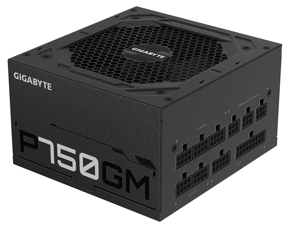 With 750W output capacity, the P750GM comes with a 120mm Smart Hydraulic Bearing (HYB) fan, Japanese capacitors, and a 5-year warranty. This fully modular PSU has a wide set of protections including OVP, OPP, SCP, UVP, OCP, and OTP. The 80 Gold certification means that the power efficiency is over 90% when the PSU is at 50% load, resulting in less heat, power waste and noise from the fan. Additionally, the 120mm fan only starts spinning when the PSU load is over 20%. Gigabyte claims the PSU's MBTF is over 100,000 hours.