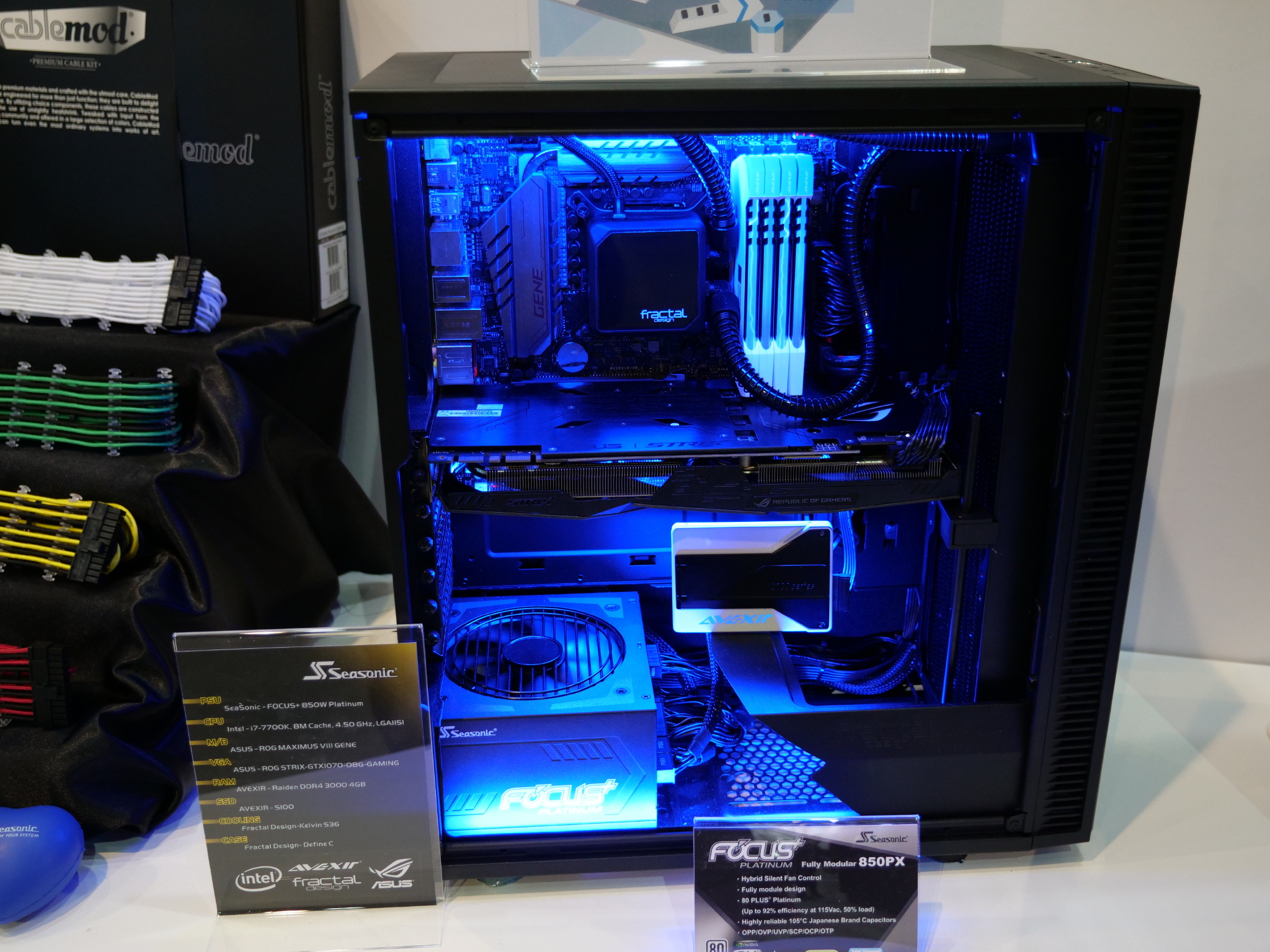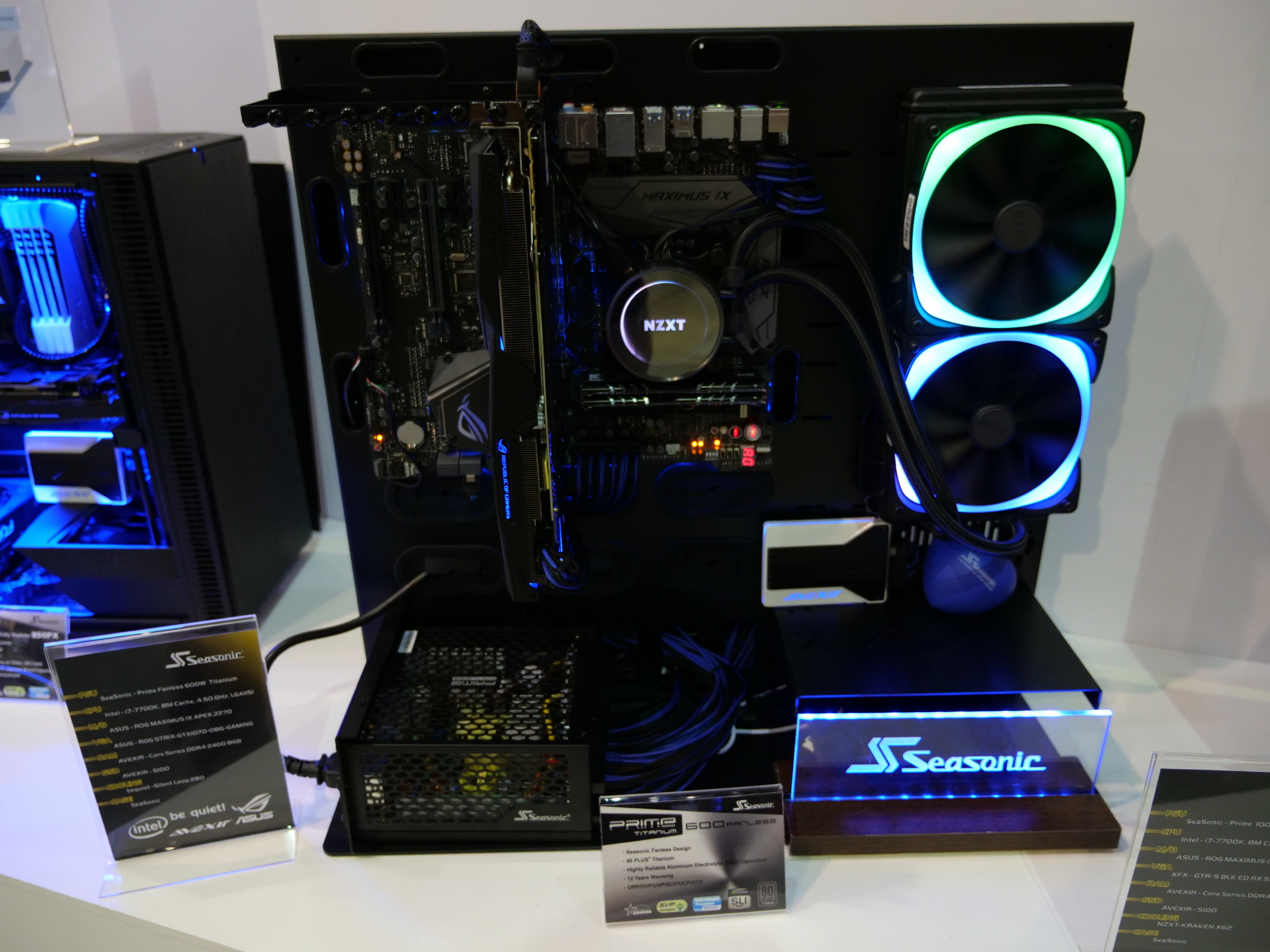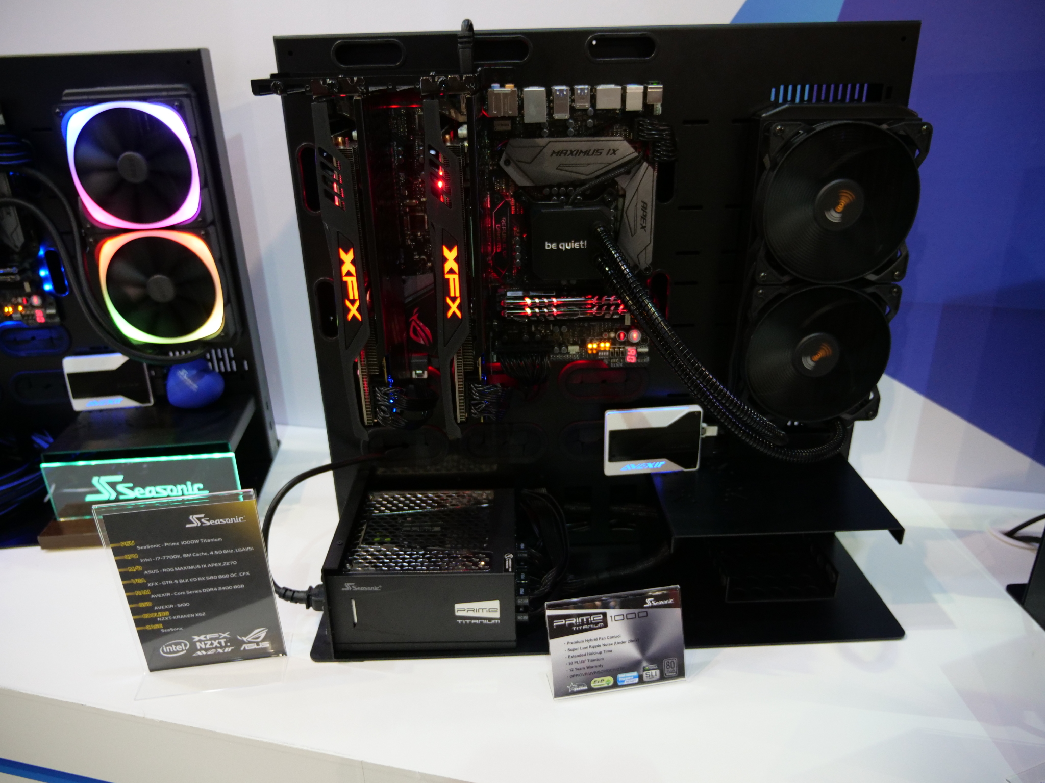 As you can see in the gallery above, Seasonic has no shortage of power supplies to show off, with many of them falling under the 80Plus Gold and Platinum efficiency ratings. There were also a few custom builds on show, which is a first for the Seasonic booth.