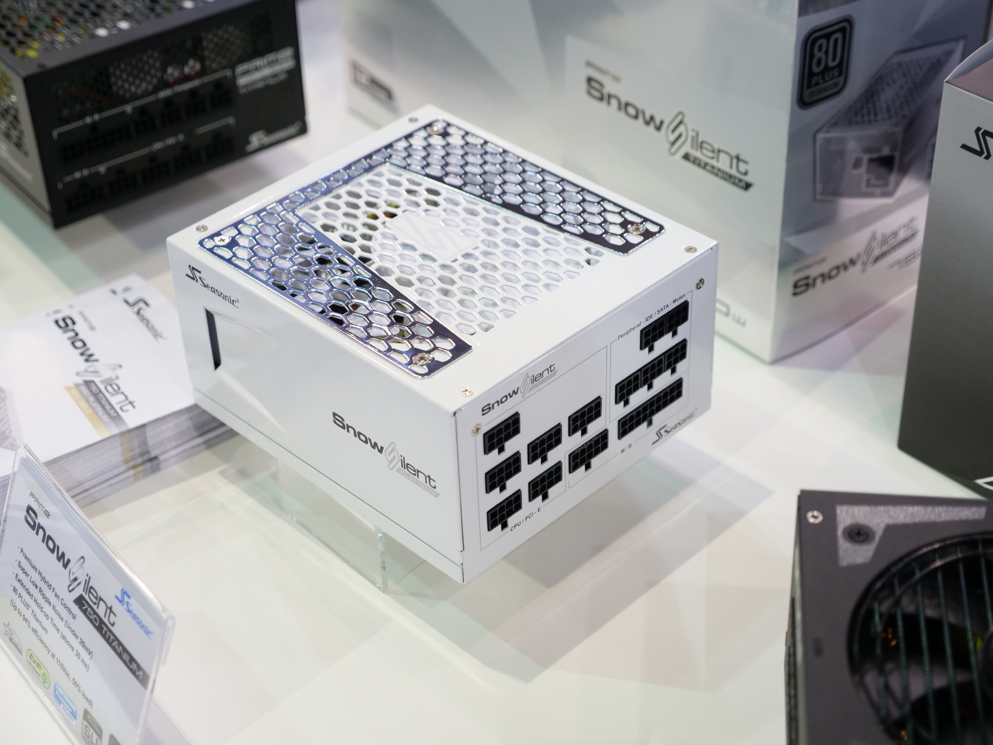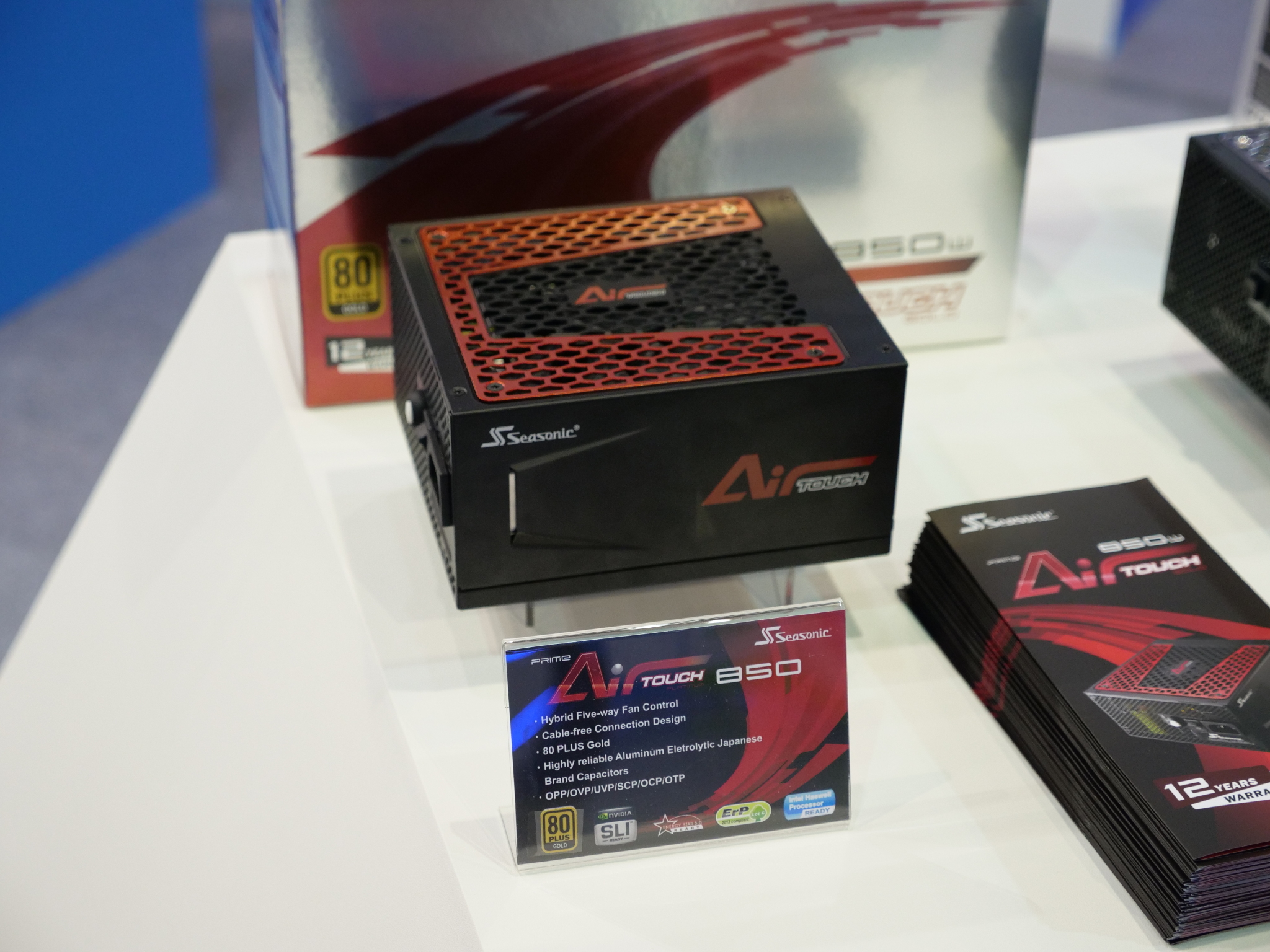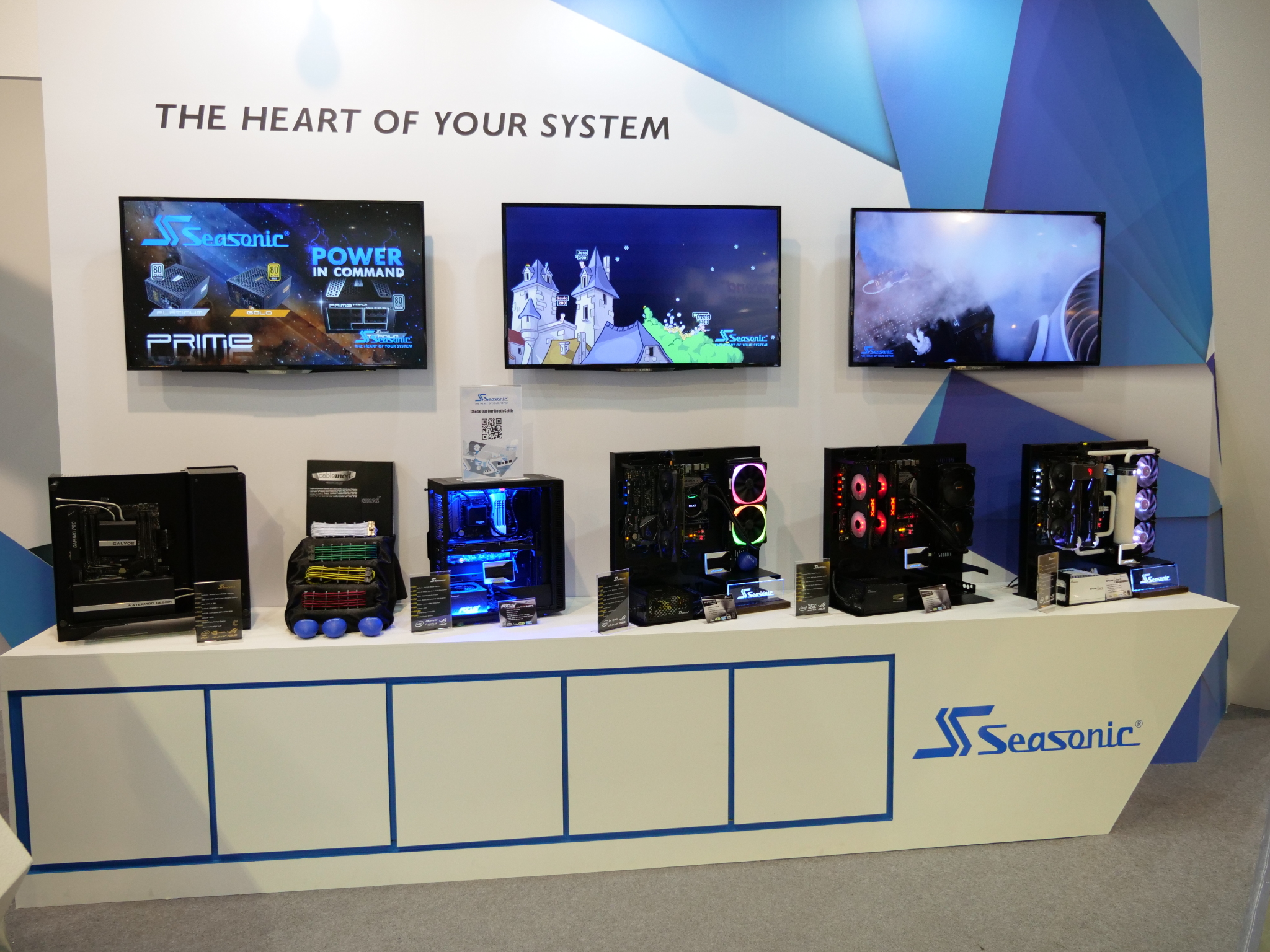 As you can see in the gallery above, Seasonic has no shortage of power supplies to show off, with many of them falling under the 80Plus Gold and Platinum efficiency ratings. There were also a few custom builds on show, which is a first for the Seasonic booth.