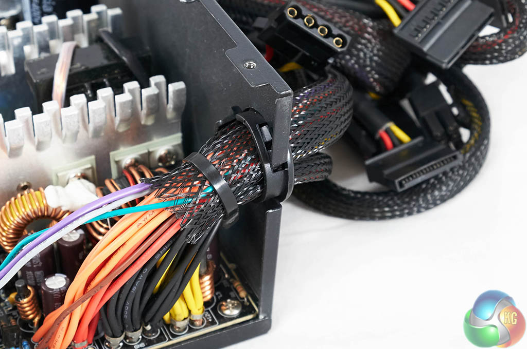 The hardwired cables are sleeved into the chassis and a plastic cover protects them from fraying against the metal chassis.