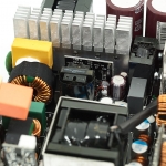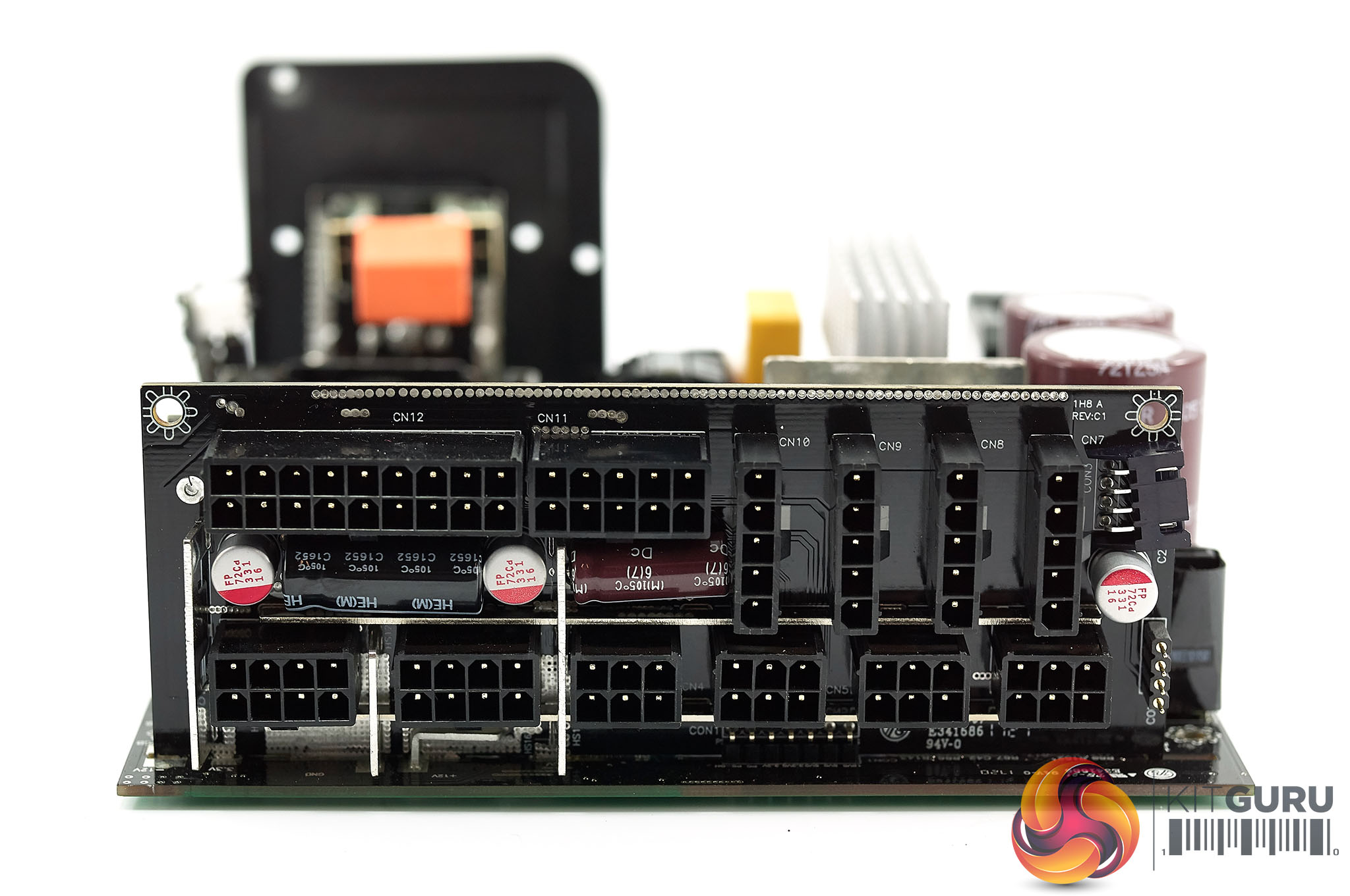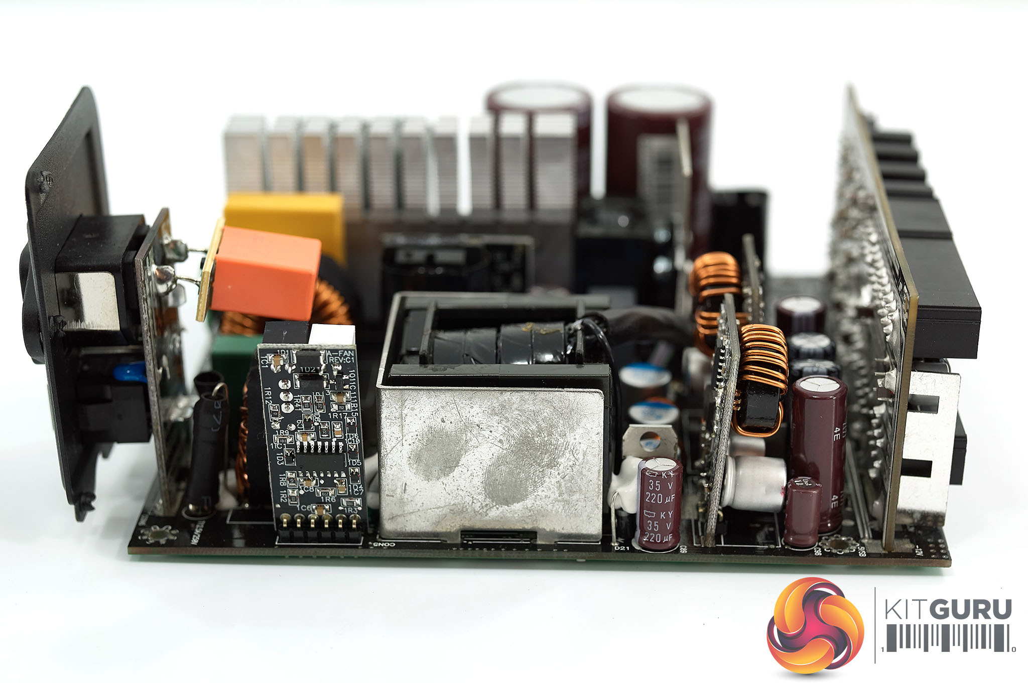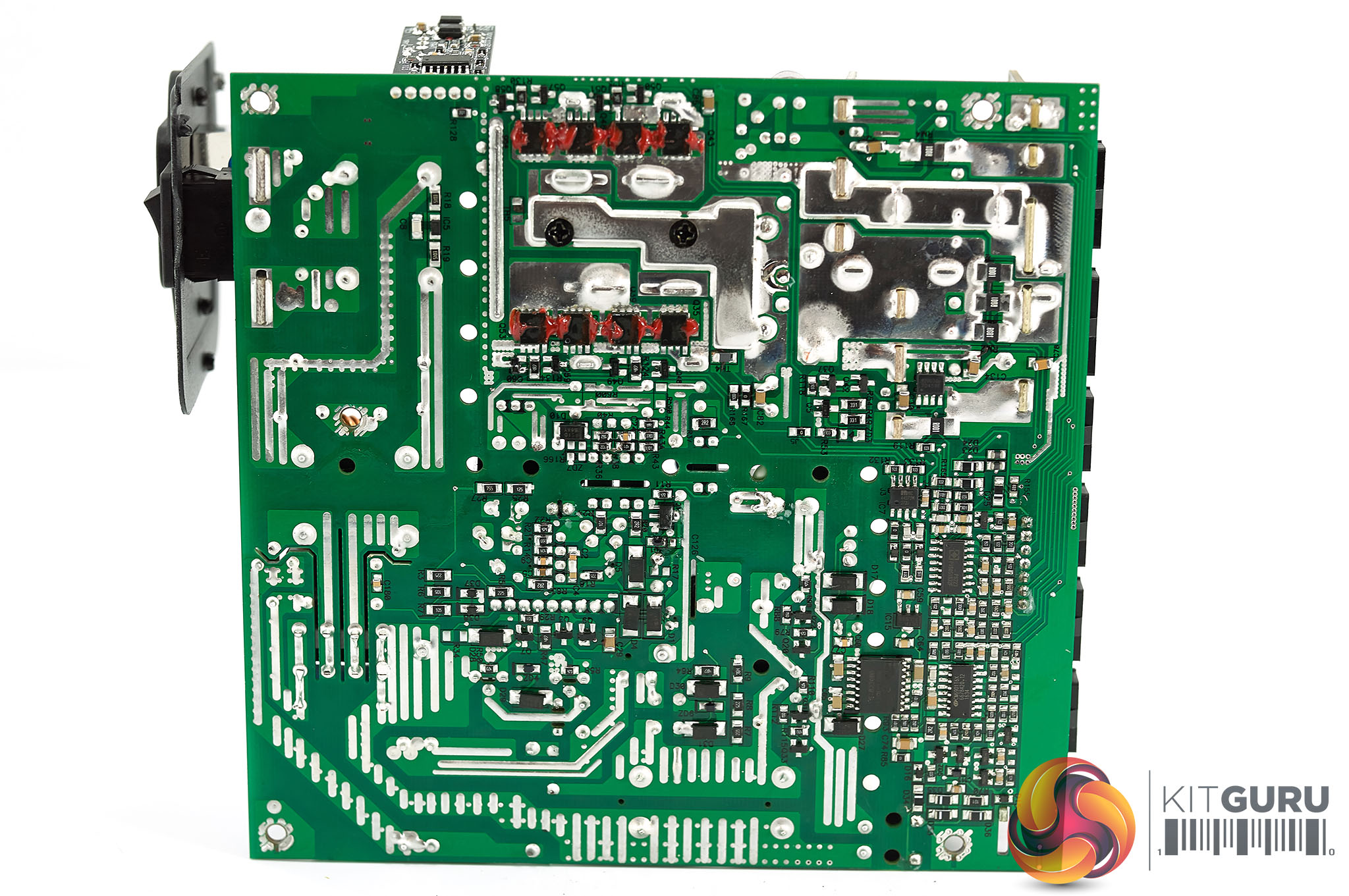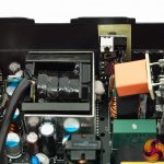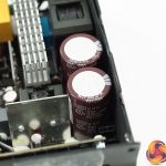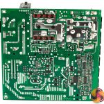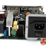 Chemi Con electrolytic caps are adopted on the modular board to deliver additional ripple filtering. The soldering on the main PCB is very good and Aerocool have attached a thermal pad to the outer case to offer additional cooling for the +12 FETs.