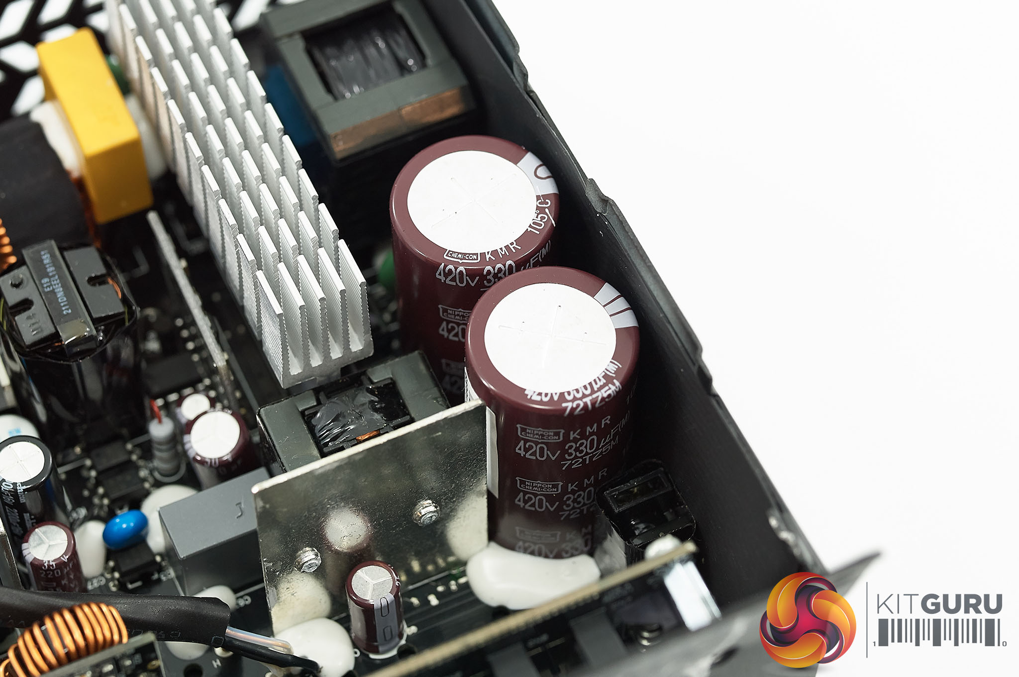 On the primary stage we were pleased to see two 105c rated Nippon Chemi Con capacitors rated 420V 330uF each, for a total combined output of 660uF.