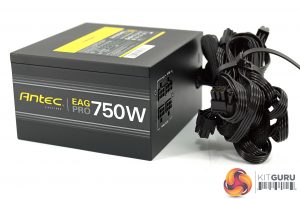 The EA750G Pro can deliver 62A on the +12V rail for a total of 744 watts output. Both +3.3V and +5V rails deliver 20A for a total of 100 watts.