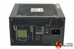 One side of the power supply is honeycomb vented with a power switch, connector and Hybrid mode switch. This offers semi fanless mode when enabled.