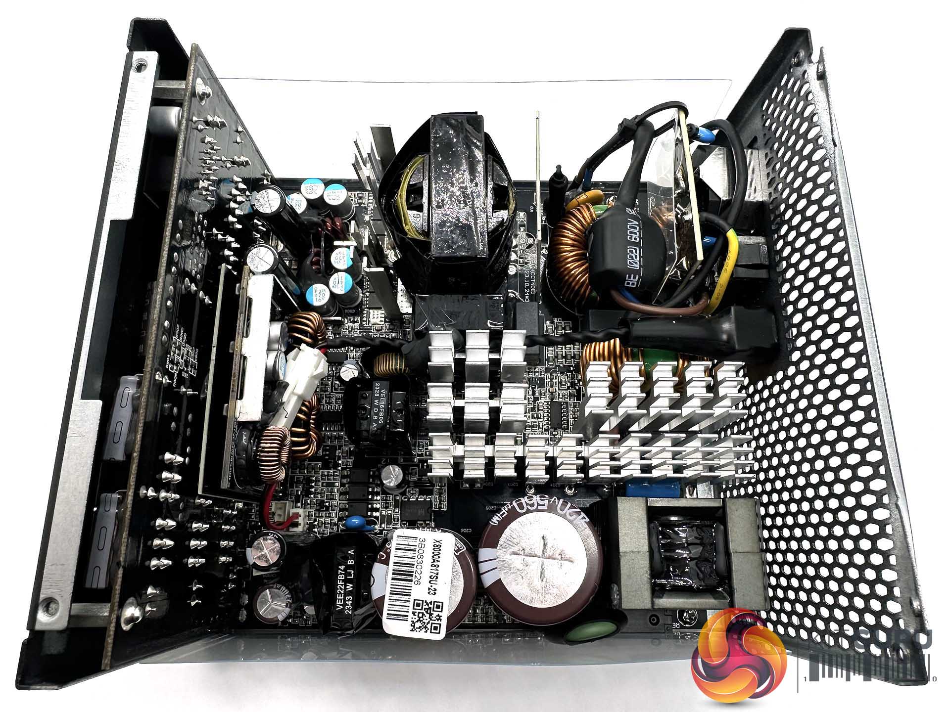 This is a full bridge topology design based on the Seasonic Vertex PX Platinum platform. This specific unit is similar to the VERTEX PX ATX 3.0, with the primary difference being the new 12V-2×6 connector/cable. An LLC resonant converter is adopted for lossless switching and improved efficiency levels. The 12V powers a pair of DC-DC converters to generate the minor rails. The power supply is well designed, to be able to allow air to flow through the components. Heatsinks are quite small, but due to the high rated levels of Platinum efficiency there should be no concerns.