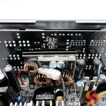 This unit is populated with quality 105c rated Japanese capacitors from Rubycon, Nippon Chemi Con and Nichicon. The two primary Nippon Chemi Con capacitors are rated 330uF and 560uF to produce a total of 890uF. Seasonic have adopted an array of polymer and electrolytic capacitors on the modular PCB to help with ripple suppression.