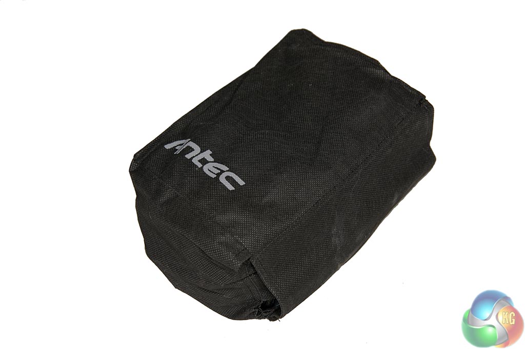 Full marks for packaging – Antec are using thick foam to protect everything inside. The modular cables are all protected inside a soft felt bag (top left). The Antec High Current Pro Platinum power supply is also protected inside a felt bag (top right).
