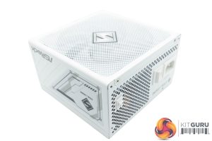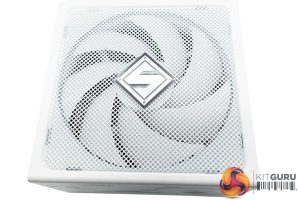 I have to admit I do like the styling of this power supply, it's a matte white which is certainly more eye catching that the plain matte black version. There are some nice stickers and layout decisions around the panels, although I do have to admit the ‘S' logo on the top of the unit, in the center of the fan, reminds me of the ‘Superman' logo a little.