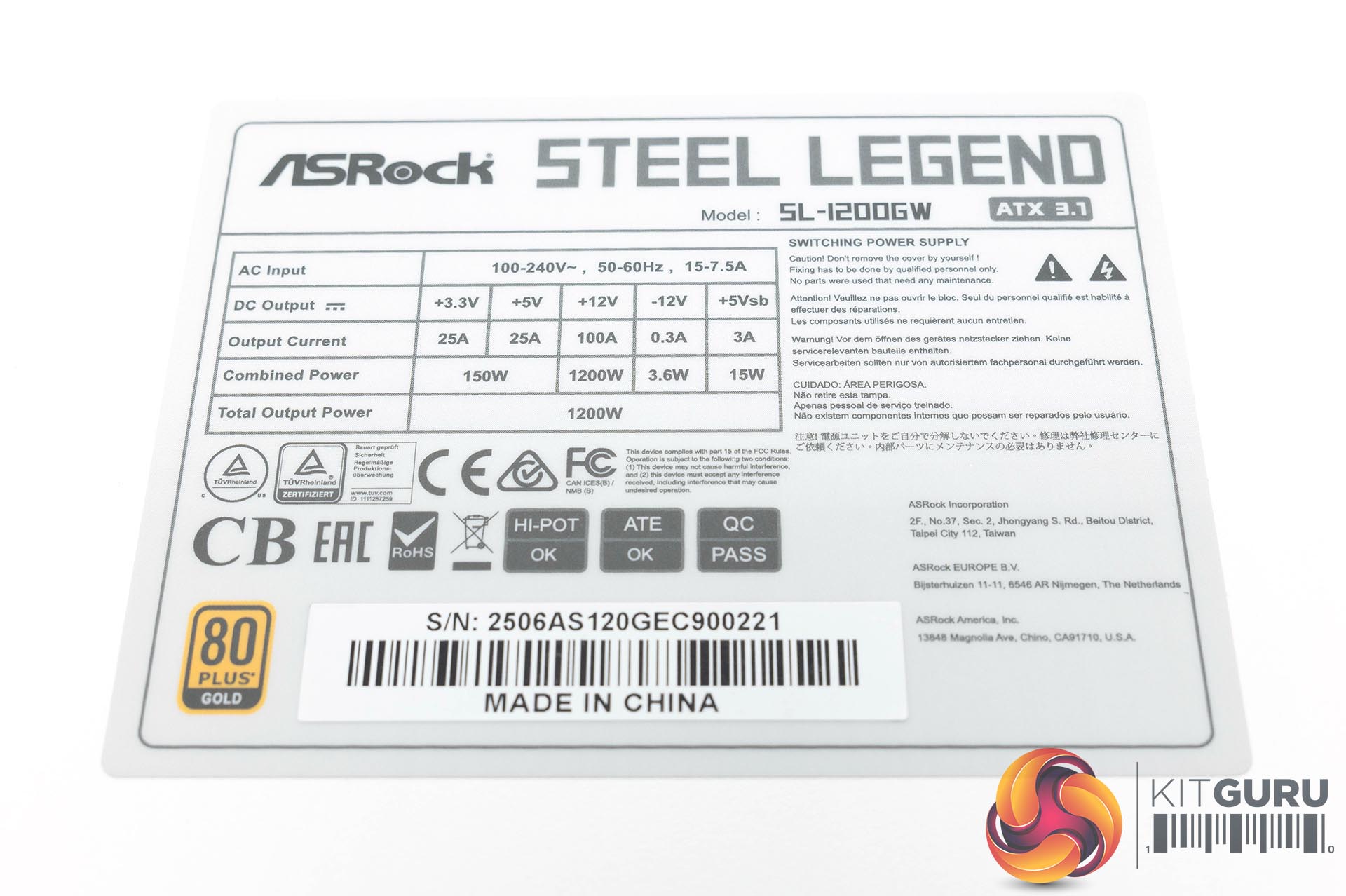 The power supply is able to deliver 100A across the +12V rail, and 25A across both minor rails. Total power output is set at 1200 Watts.