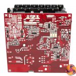 The first part of the transient filter is at the AC receptacle as expected and it includes two Y caps and two X caps. It continues to the main PCB with two Y caps and a single X cap. A MOV is responsible for the protection against surges via the mains grid. The primary Japanese Capacitor is rated 105C – 820uf 400V. Bulk capacitors are Hitachi.