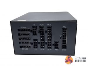 One end of the power supply is home to the modular bay, clearly labelled to ensure the build phase is kept simple and clean. The other end of the power supply has a power connector, switch and vented panel. The Overclocking key attaches to the port labelled ‘OCK' bottom right in the image above, top left.