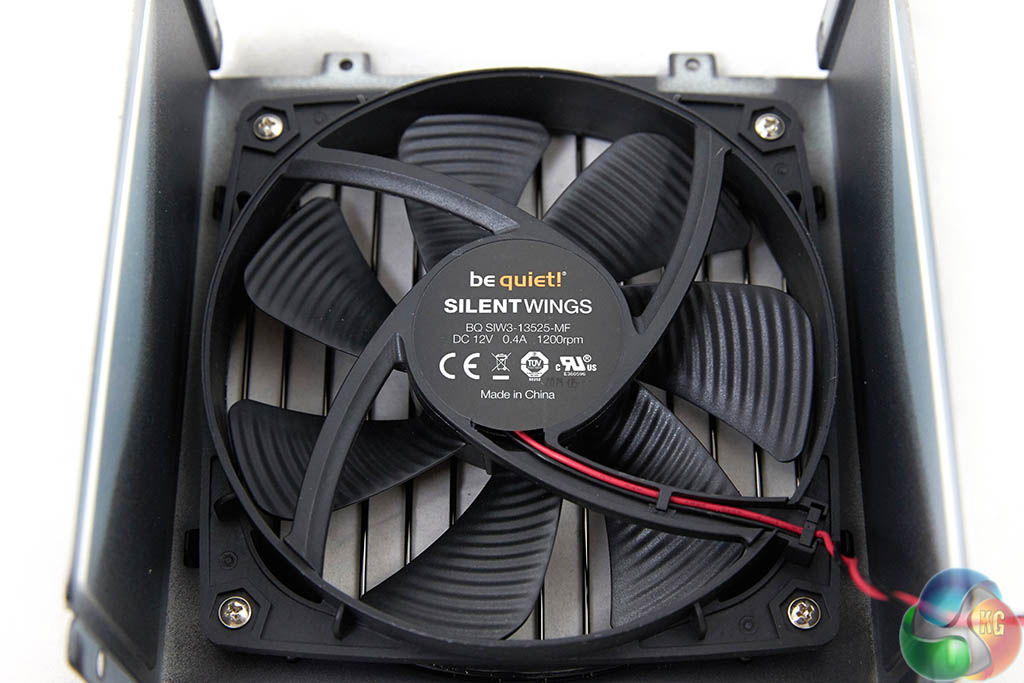 be quiet! are using one of their own 135mm SilentWings 3 fans, with a funnel shaped vent. The funnel shape is said to improve airflow while reducing turbulence. The new 6 pole motor and redesigned bearing lower noise further. This fan, as mentioned already in the review has the slowest start up speed of any fan on the market – 220 rpm.