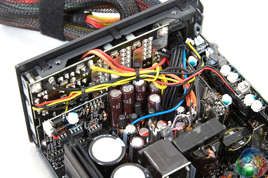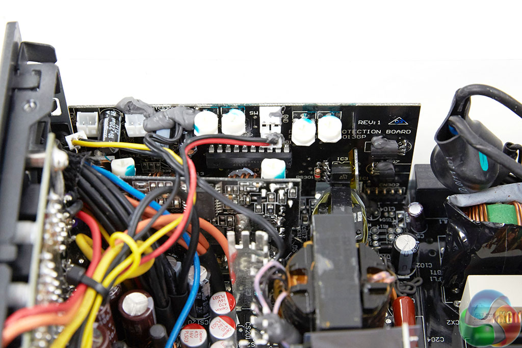 A Half Bridge design uses two MOSFETS, a Full Bridge doubles this to four – reducing the load across them all, this is important for higher wattage units. The LLC part of the name relates to the use of two inductors and one capacitor – this smooths out the alternating current – giving very high levels of efficiency, critical to achieve 80 Plus Platinum efficiency.