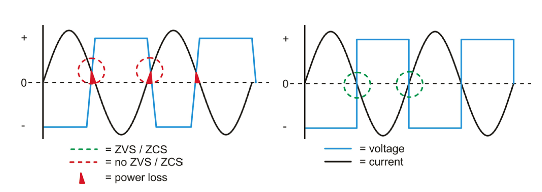 The Dark Power Pro 11 utilises zero voltage switching and zero current switching technology. This essentially captures power lost by other topologies with switching done at the zero line. A traditional topology cannot control the switching point to the same degree so there is some switching loss. With a ZVS/ZCS implementation this ‘lost' power is captured, giving better efficiency.