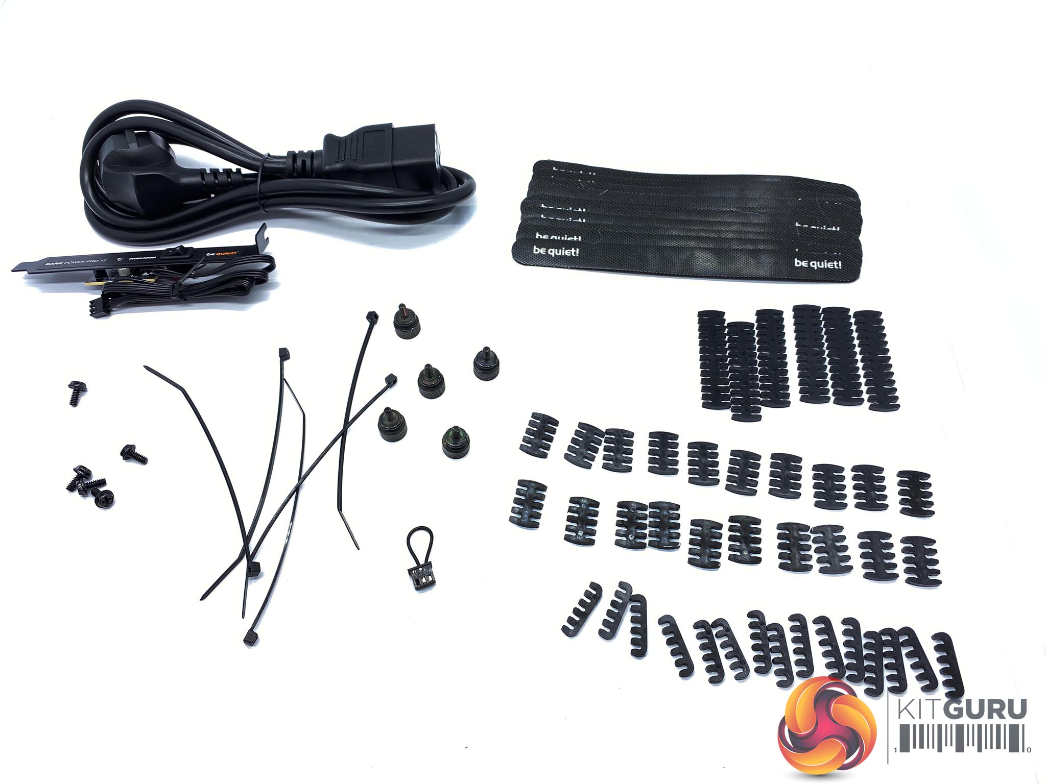 At this price point you would expect high grade cables, and I am happy to say the quality is stellar. be quiet! have sleeved the cables and supplied a ton of little extras with the supply. There are a variety of cable combs in different sizes, felt and plastic cable ties, the overclocking key, a power supply cable, a jumper cable for quick starts, and mounting screws.
