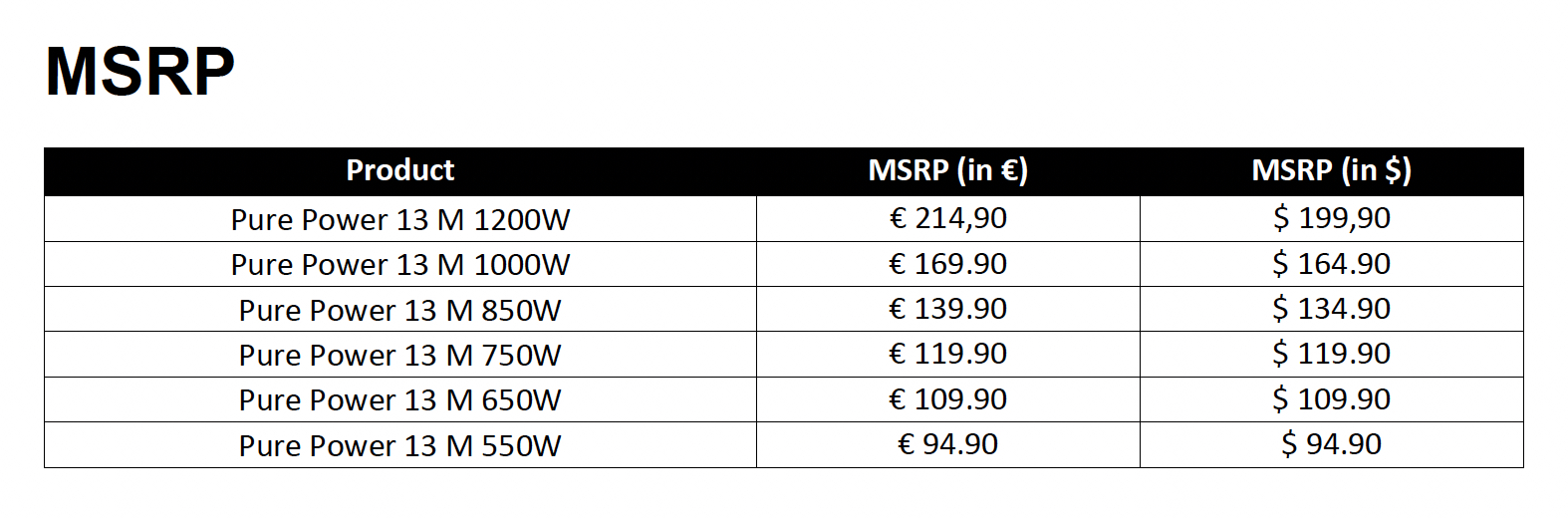 - Pure Power 13 M is a semi-passive PSU, only cooled actively when necessary, for a quieter operation.