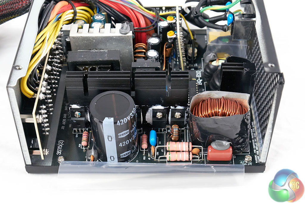 This power supply looks like an FSP OEM design and the overall build quality is quite high. There are a few heatsinks to help with heat transfer. The company are using an Active Clamp + SR (Synchronous Rectifier) design.