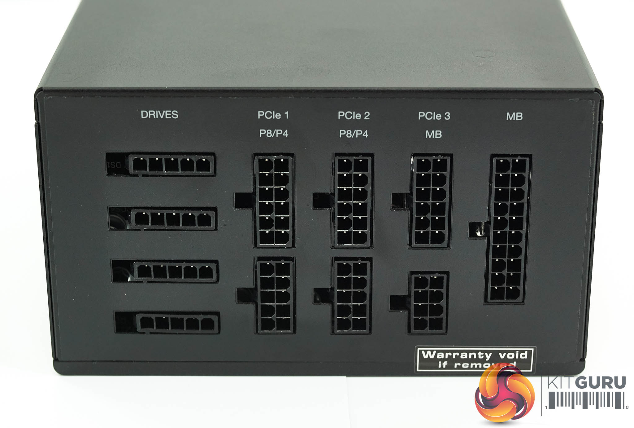 The modular bay is neatly laid out with lettering above each row to aid with the building phase. All the connectors are different sizes however so its impossible to plug the cables into the wrong connector. Pay attention to that ‘warranty void if removed' sticker. I will ignore it completely however for you.