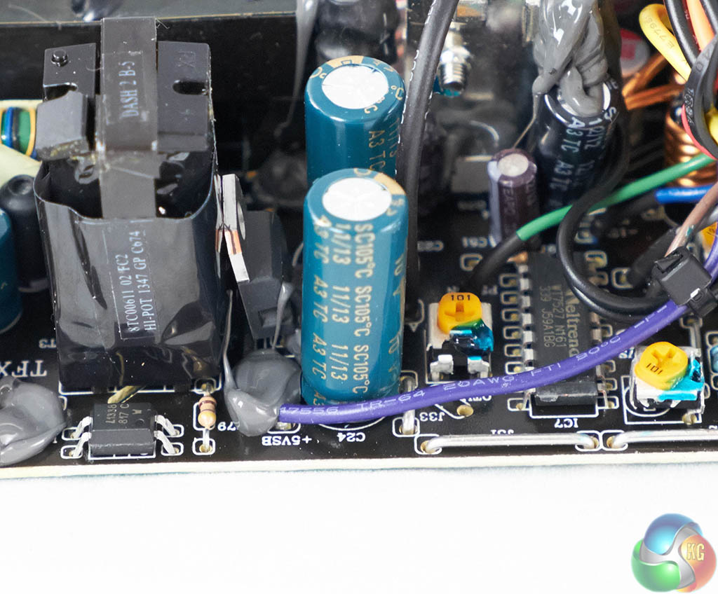 be quiet! are using a Chinese TEAPO 85c rated capacitor in the primary stage. This is rated 420V and 180uF. TEAPO wouldn't be our first choice, but it looks as if be quiet! are working to a very specific budget. Secondary stage capacitors are a mixture of Chinese brands … mainly TEAPO.