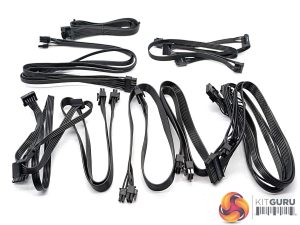 The cable quality is good and there are no in cable capacitors either. The gauge varies between 15-18AWG for the SATA and EPS12V cables. With the ATX connector a 16-22AWG gauge. The 12+4 Pin PCIe connector is 600mm long with a 600 watt rating and its 16-26AWG Gauge.