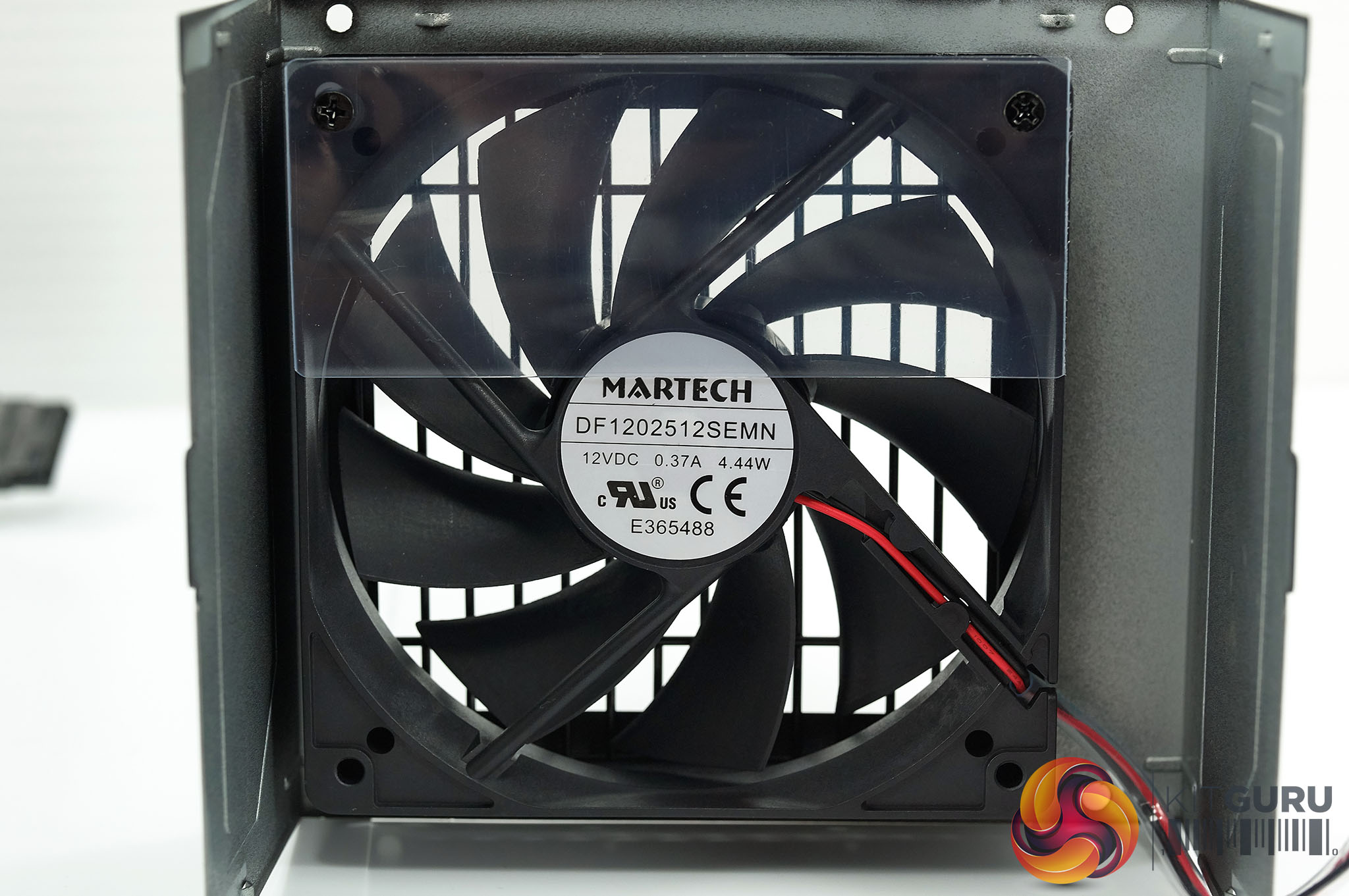 Bitfenix are using a Martech 120mm fan with the moniker DF1202512SEMN – rated 12VDC, 0.37A and 4.44W. We can see the plastic cover over part of the power supply to direct air onto specific parts of the power supply.