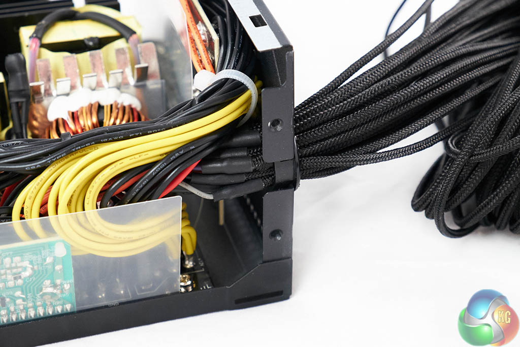 The cables are all sleeved into the chassis and protected with a grommet. Some of the wires are sadly without heat shrinks as they connect to the PCB.
