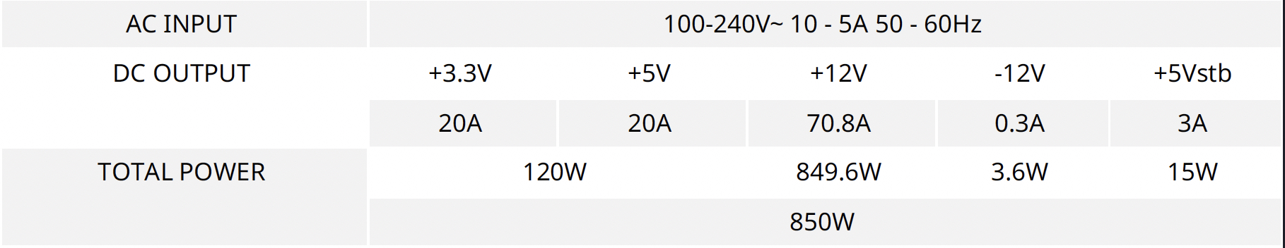The unit can deliver 20A on both the +3.3V and +5V rails. and 70.8A via the +12V output.