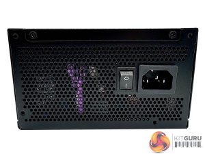 One side of the PSU is home to a power switch and connector with a vented panel to aid with airflow. We can vaguely see a purple heatsink inside, although we will get a closer look at this soon when we open it up.
