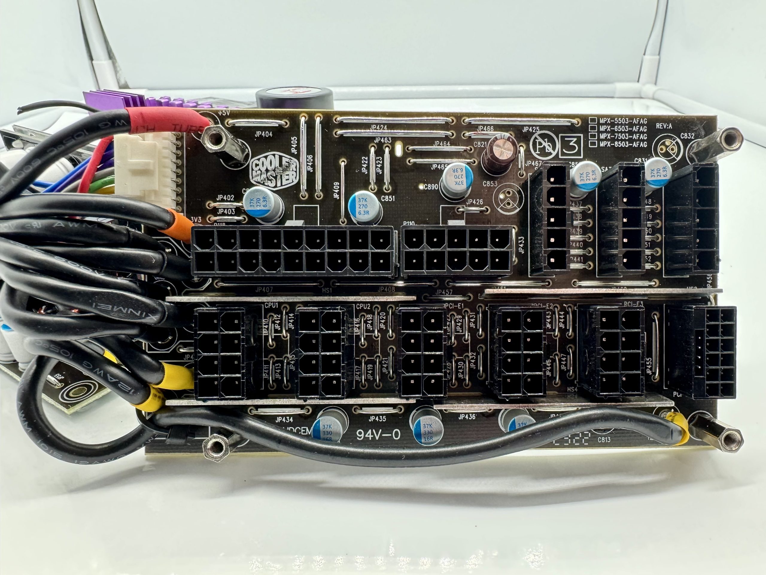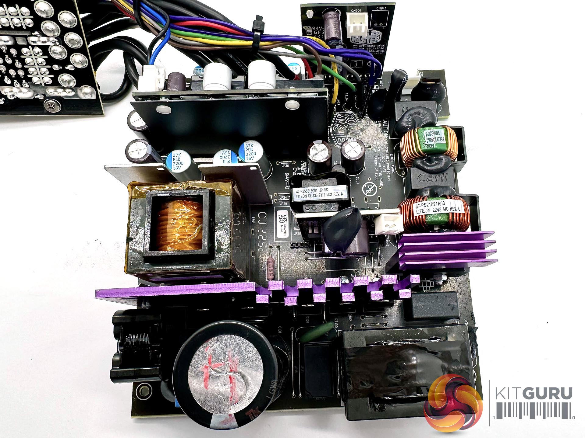 Cooler Master are using Lite On as their OEM partner for this unit, a brand many of you will know for making optical drives and power adapters. The soldering quality on the PCB is first class, and the overall design is pretty good. This is a half topology design with an APFC converter and two FETs. An LLC resonant converter is adopted to help reduce switching losses. Six FETs control the 12V rail on the secondary side, with two DC-DC converters to generate the minor rails.