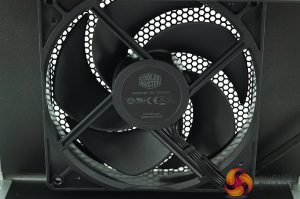 The fan is branded Cooler Master, and is in fact one of their high grade Silencio units. It comprises a ‘loop dynamic bearing' inside and is rated up to 2,800 rpm 12V, 0.5A. Hey, its made in China too which I found a little ironic, considering the ‘MIJ' tag in the name of the supply.