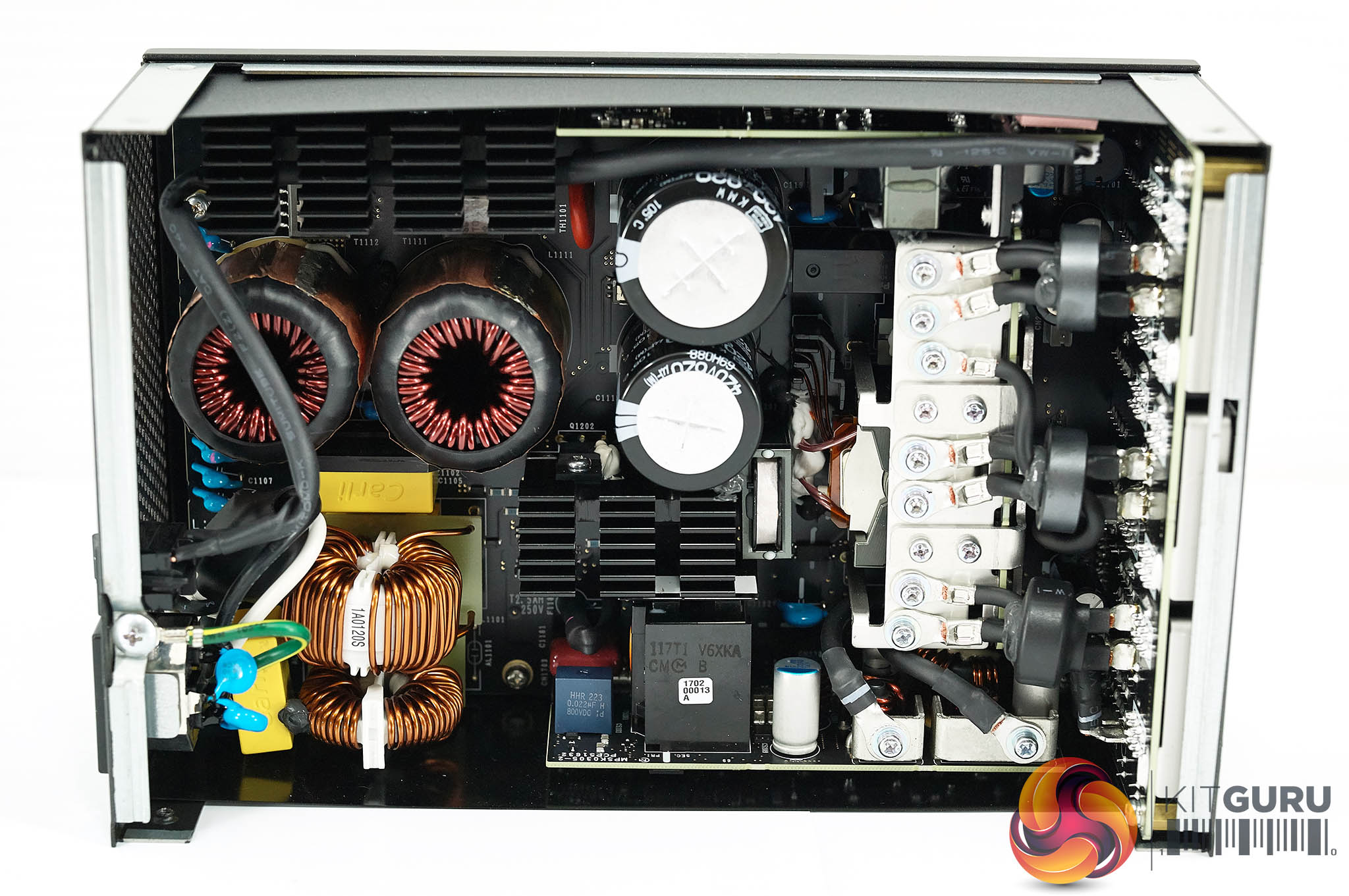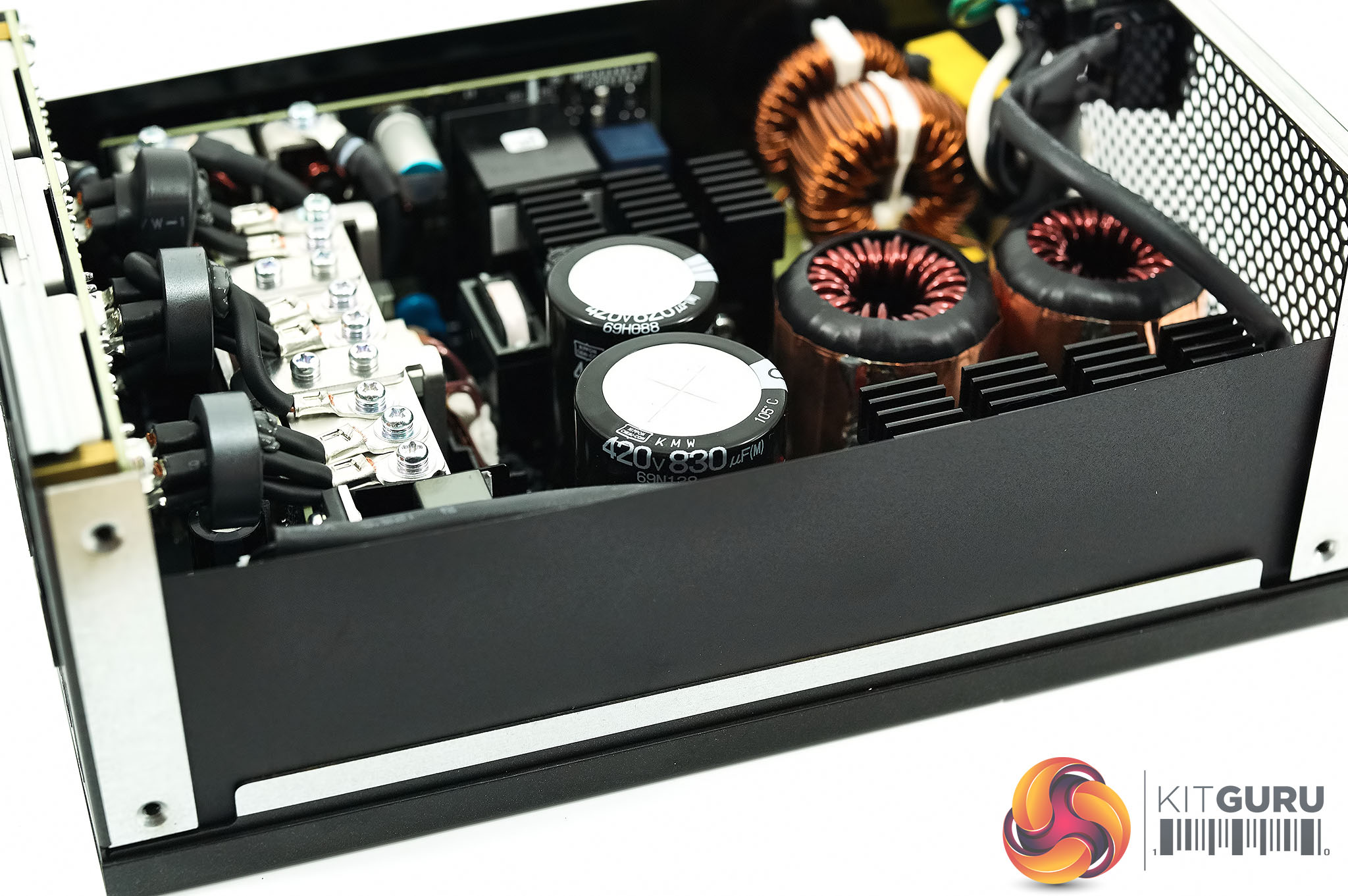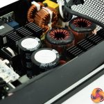 Power supply transformers generally use copper wire coiled around a ferrite core. For this MasterWatt Maker 1200 MIJ Murata came up with the idea of using thin sheets of copper stacked on top of each other with a very thin layer of insulation between them. Cooler Master say this is uniquely used in this power supply. In the case of PFC MOSFET's – Infineon's CoolMOS C7 series is used throughout – these are expensive, as much as four times more compared against a traditional MOSFET.