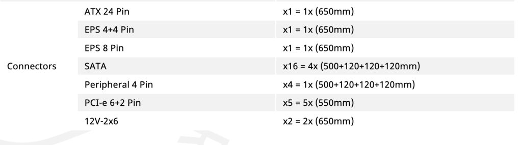 The cable quality is good all round with a variety of ribbon cables ensuring routing will be straightforward. The right angled 12VHPWR connector is a welcome addition. The unit will be supplied with a C19 power cable for the higher power demands.