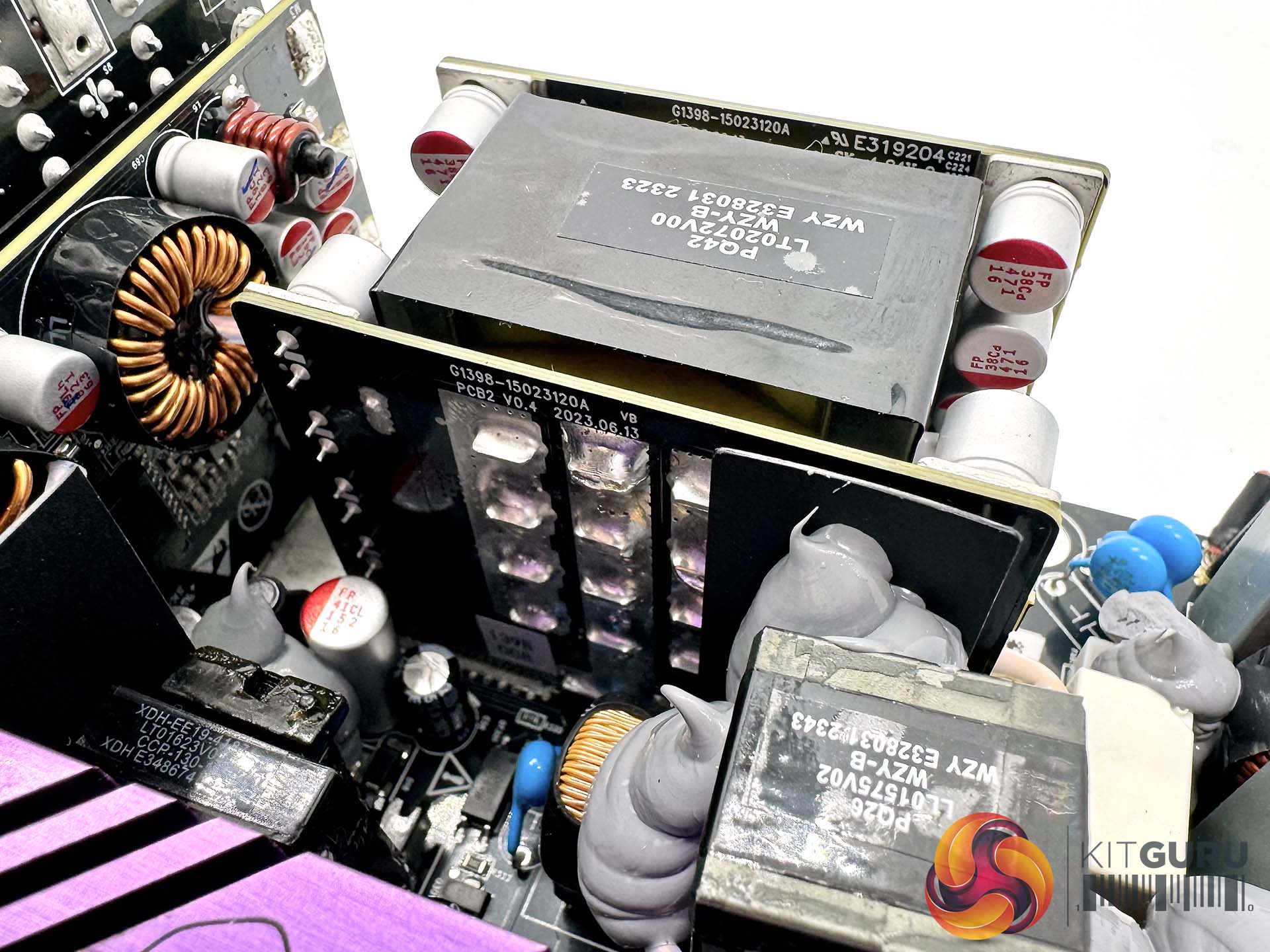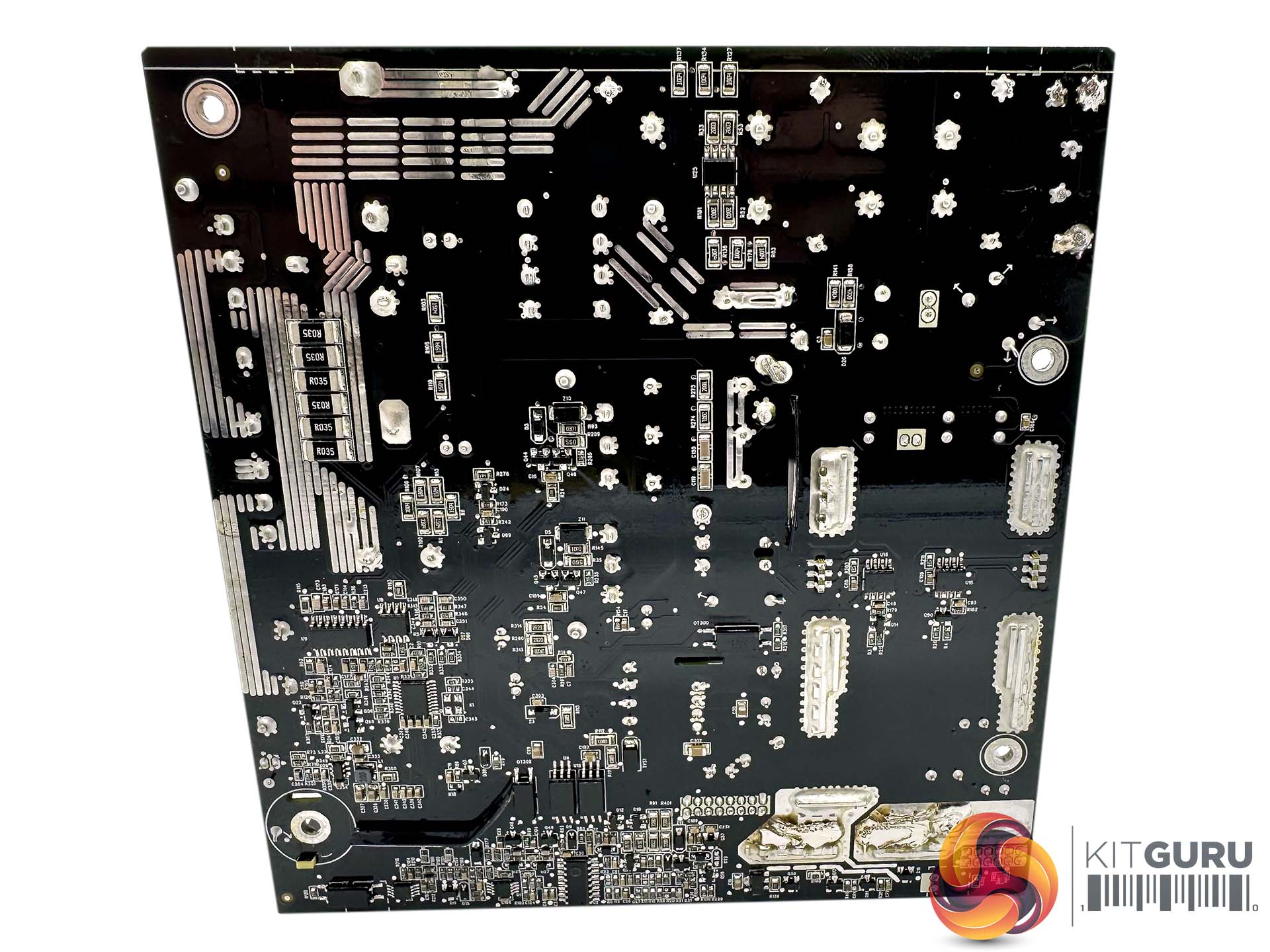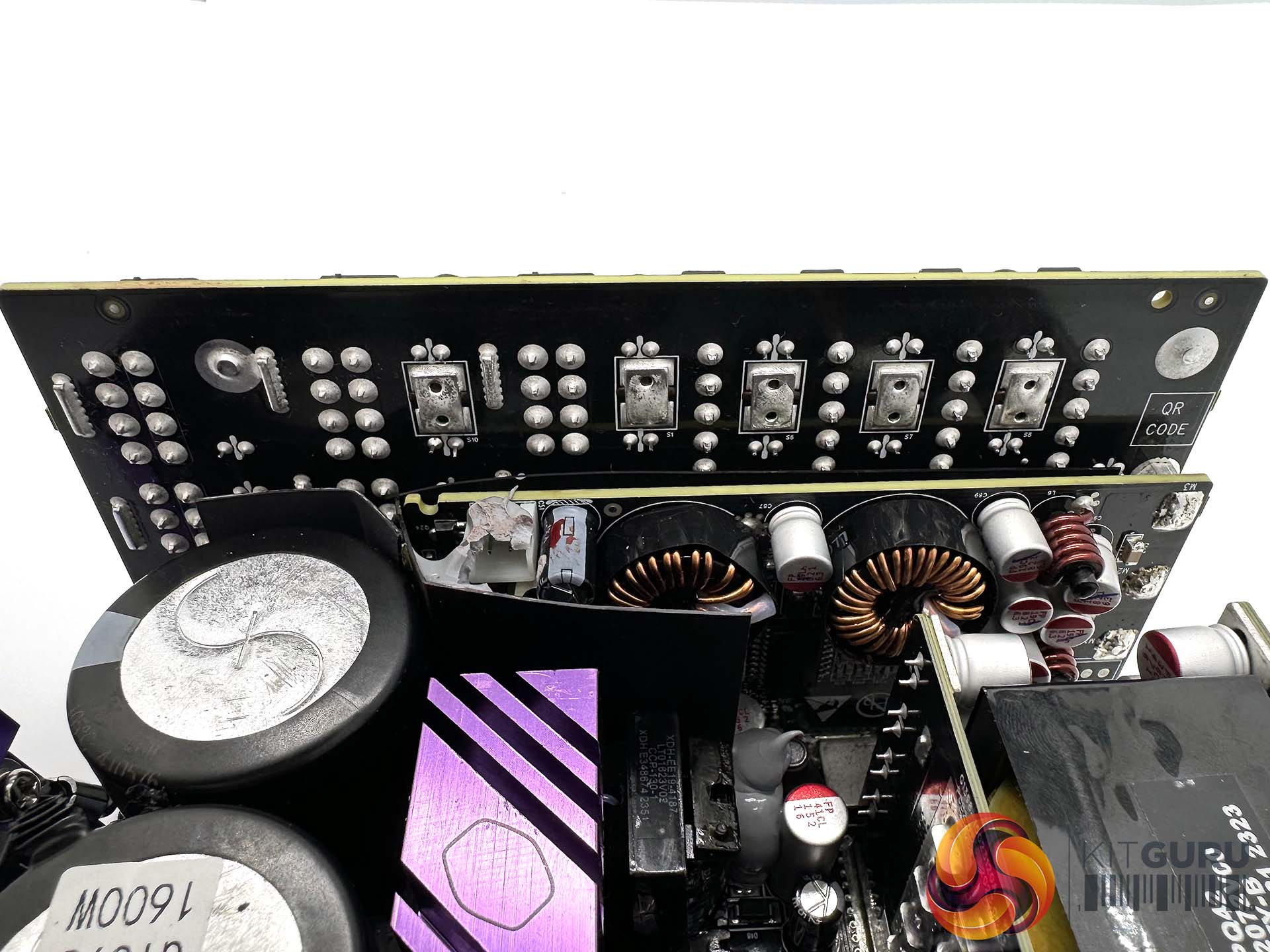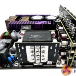 There are several large heatsinks running along the length of the densely populated main PCB to aid with heat dissipation. Soldering quality throughout is very good.