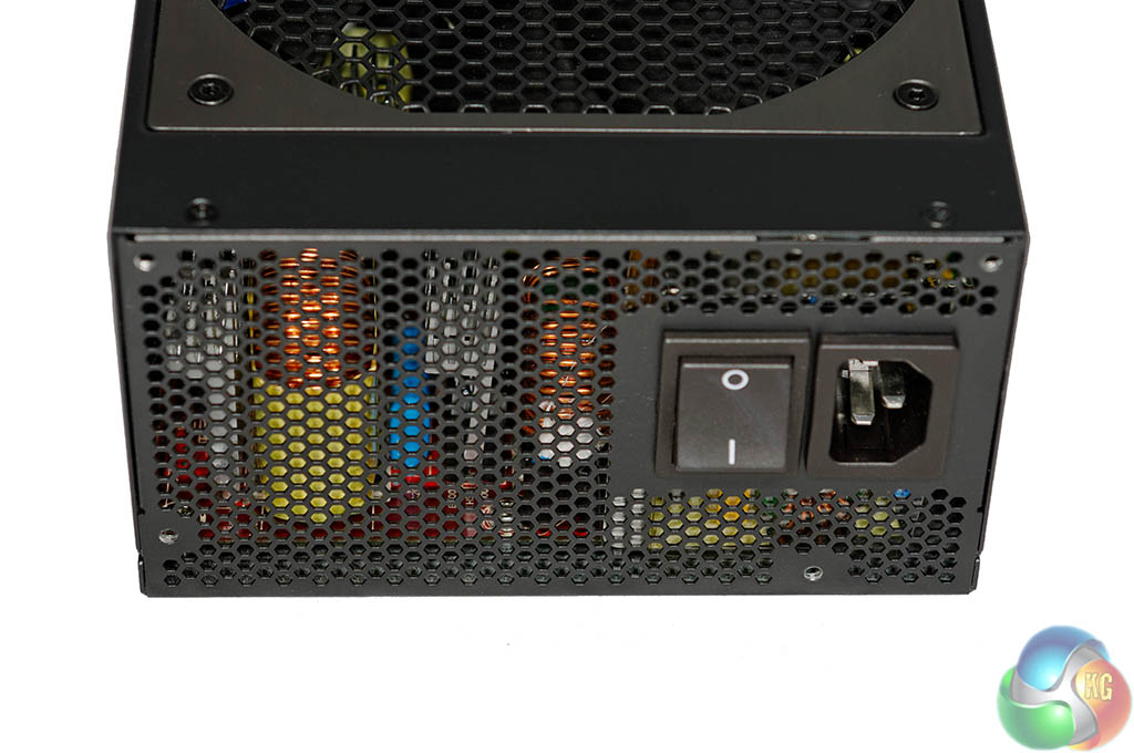 While the power supply is predominately finished in matt black paint, the fan surround is finished in silver, which gives it a little depth. The Cooler Master badge is visible in the middle of the metal grill.