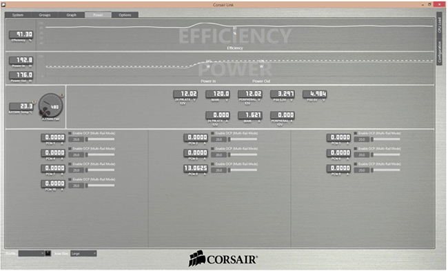 The Corsair AX1500i features Corsair Link support – enabling the customer to real time monitor efficiency and power usage. The user can also control protection and fan speed profiles direct from the desktop. You simply connect the power supply to a USB header on the motherboard to avail of the additional options.
