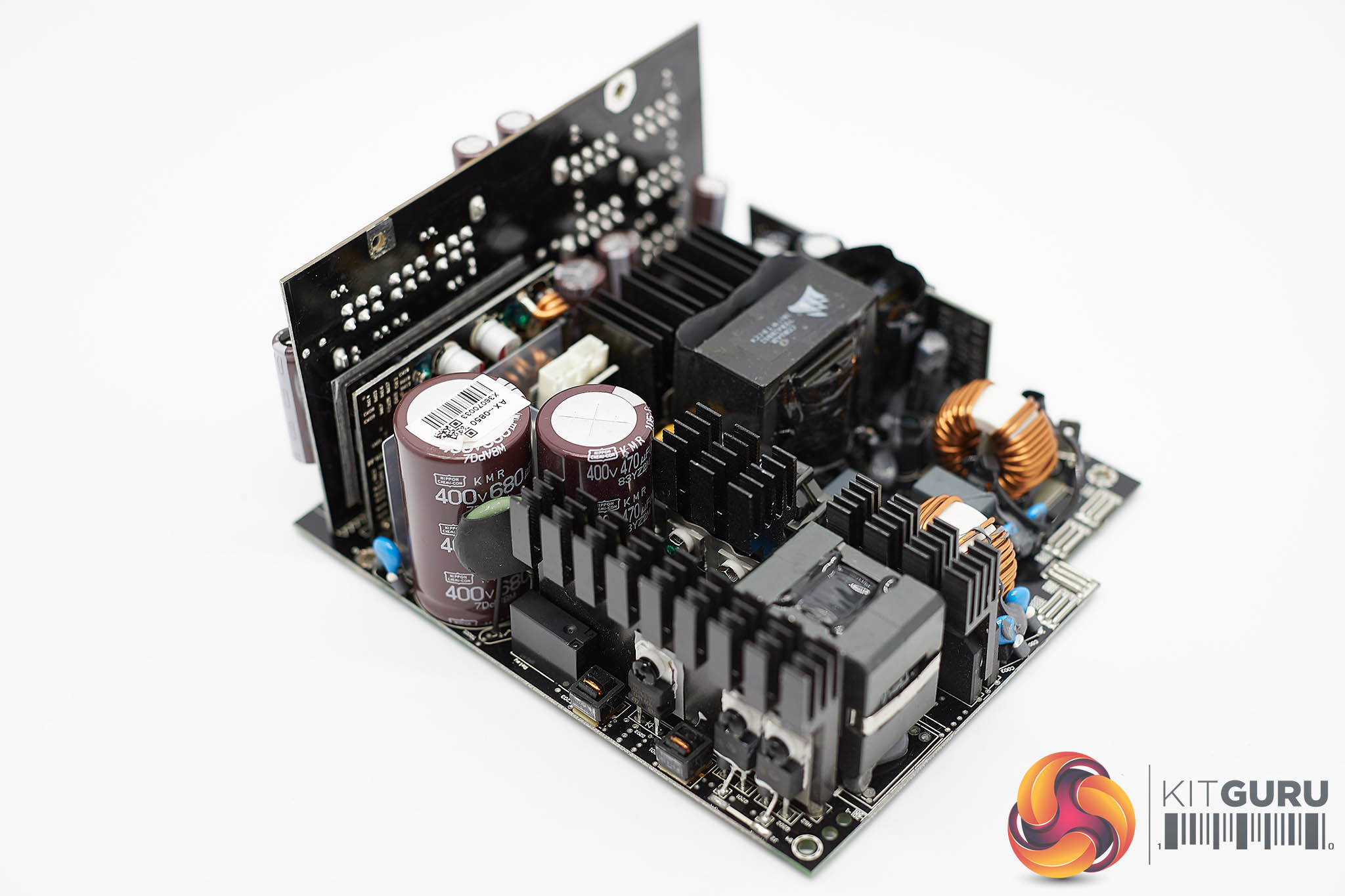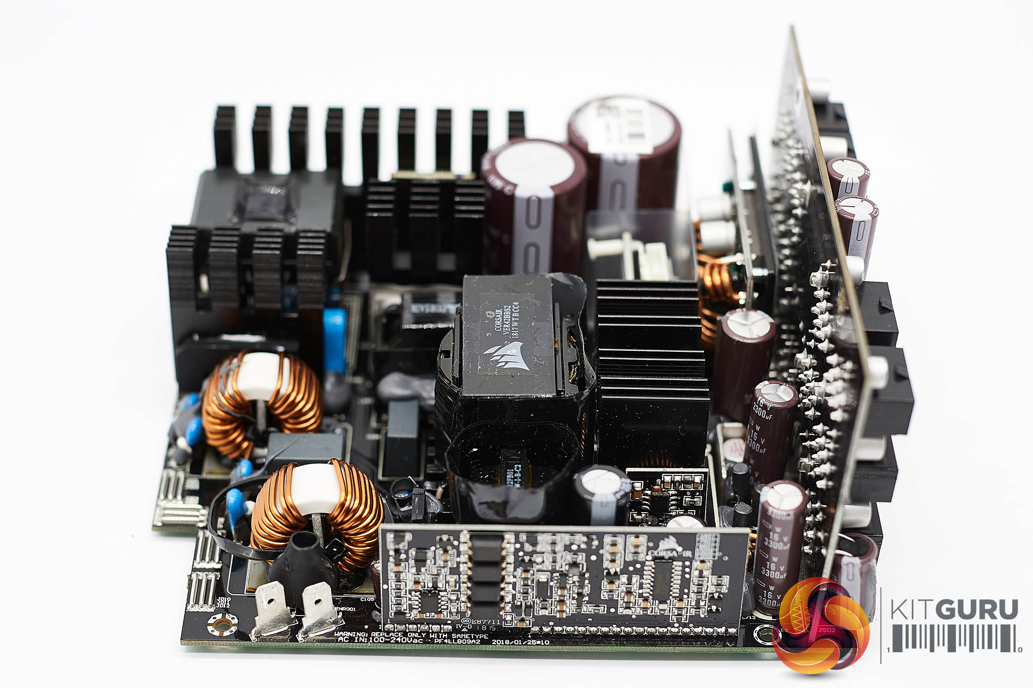 We notice that even though this unit is Titanium rated and clearly highly efficient, Corsair have populated the PCB with 4 or 5 heatsinks in key positions – just to ensure heat gets removed in situations with little, to no airflow.