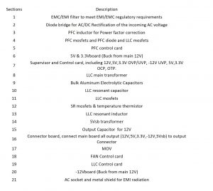 Secondary capacitors are all Japanese and we can see a diode bridge for AC DC rectification of the incoming AC voltage. All in all this is a really clean, effective design for such a high efficiency unit.