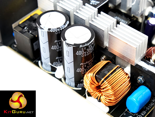 Internally Corsair have cut a few corners to meet a price point. While they are using high grade Rubycon capacitors in the primary stage, they are the lower cost 85c variants. Secondary stage is primarily TEAPO – these cheaper Chinese caps help reduce production costs in the factory. I am not a big believer in these caps as we have seen several fail over the years in our labs.