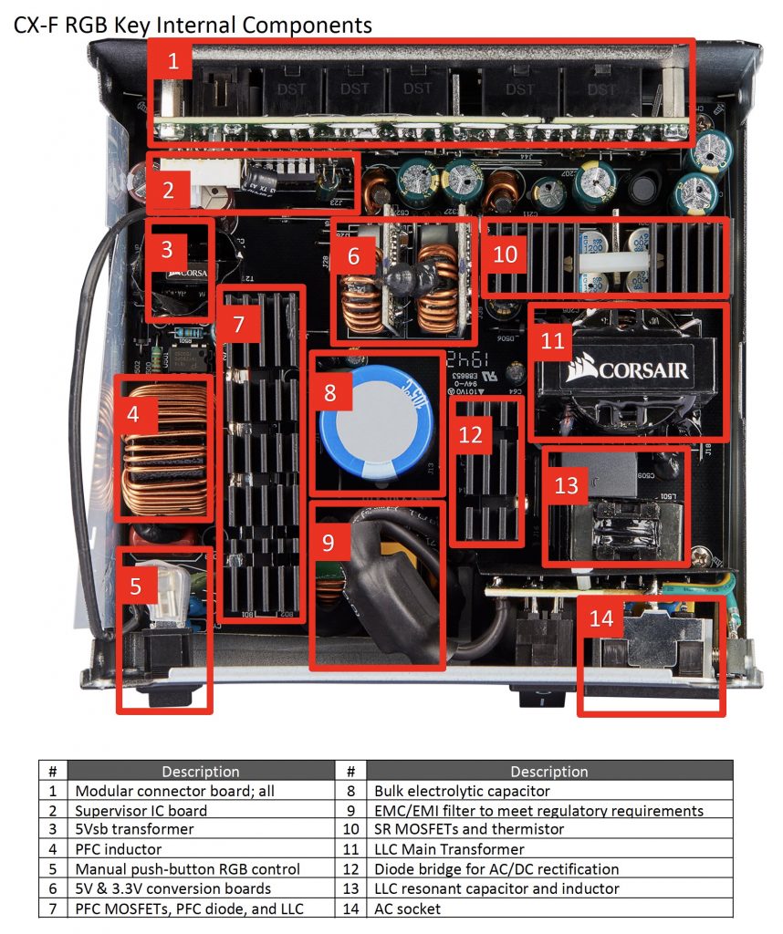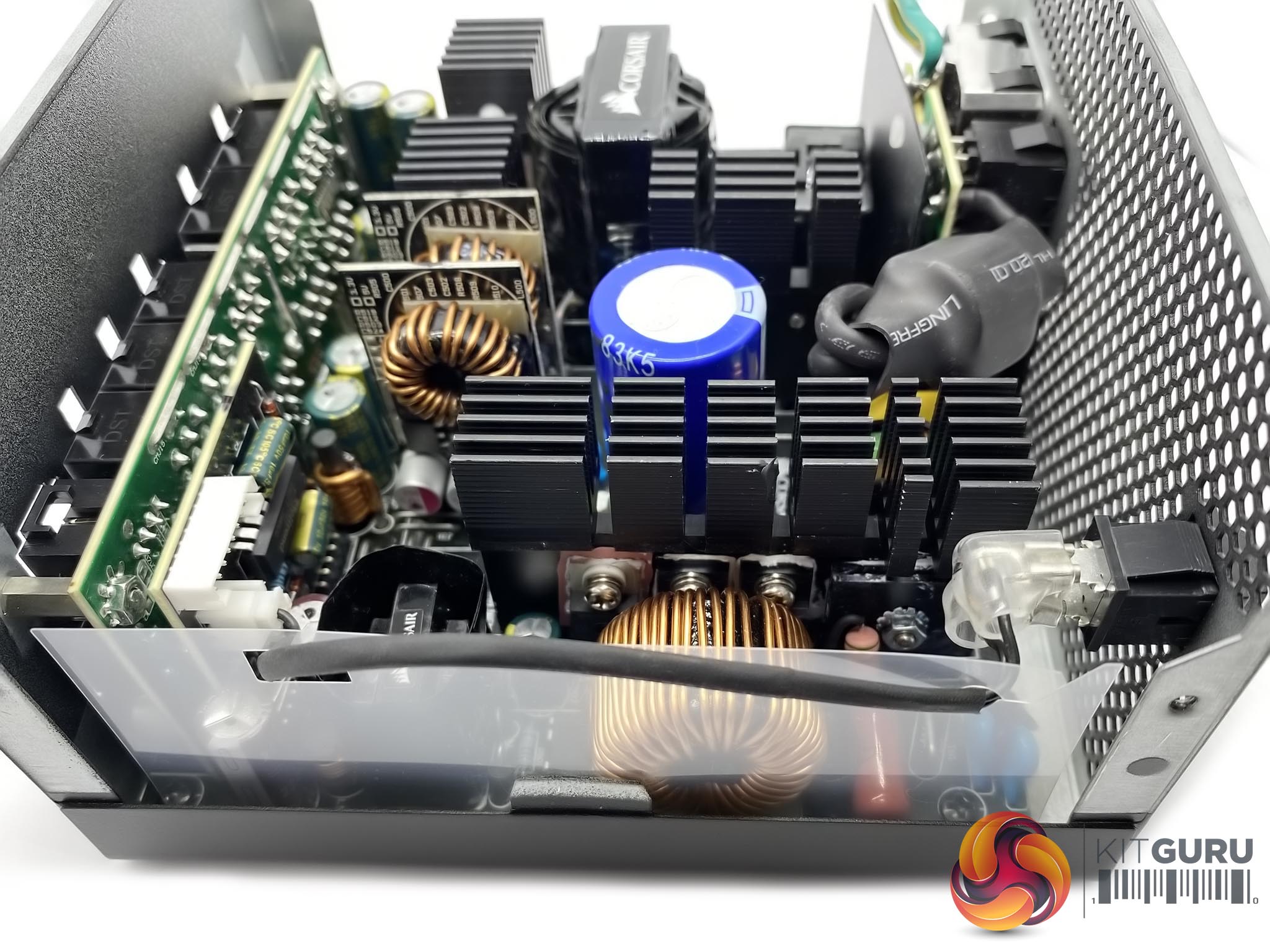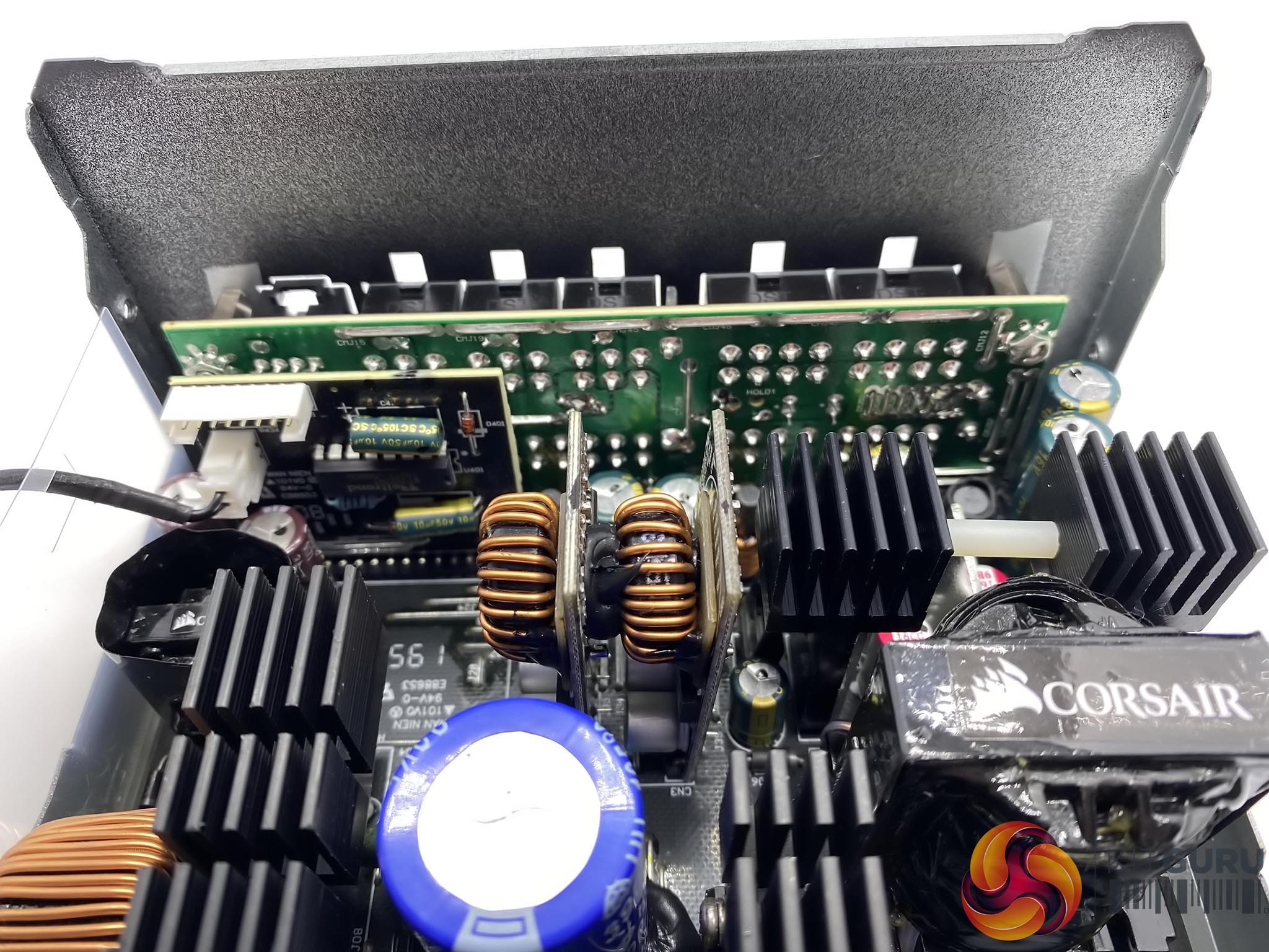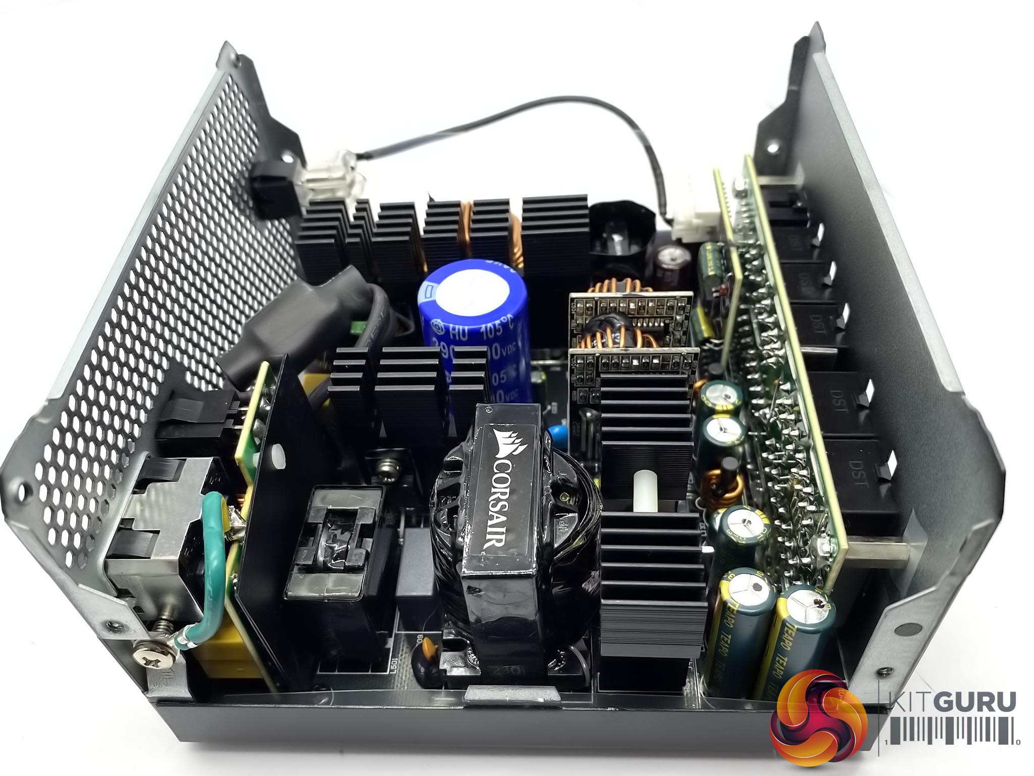 Corsair really do not want you opening this power supply – some of the screws are hidden under the product stickers on the sides, so you have to basically trash the whole unit to get inside it. I did that for you.