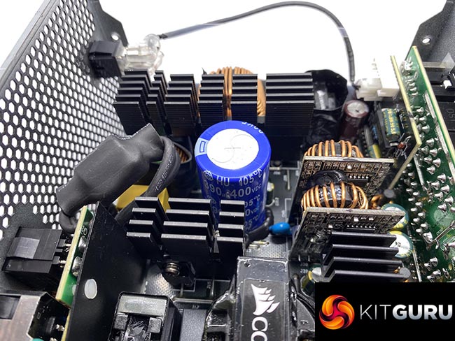 Corsair are using a quality Japanese primary capacitor, but have cut some costs by using lower grade TEAPO capacitors on the secondary side. They are clearly trying to achieve a certain price point while incorporating RGB features to appeal to a select audience, and for the most part we feel they have succeeded.