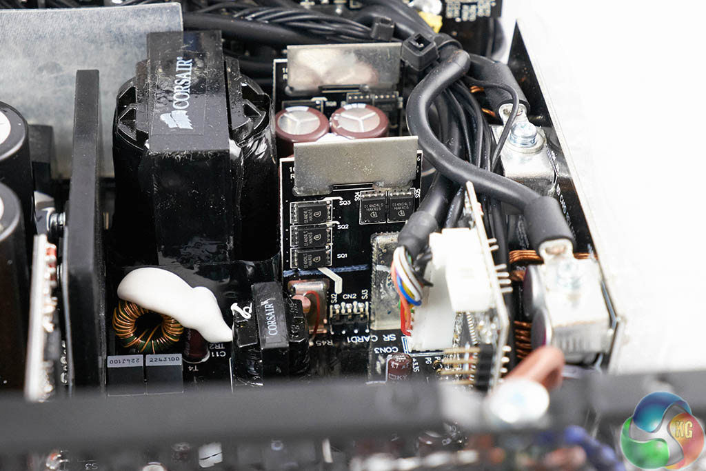 The internal layout of the HX1000i is very clean with plenty of space for airflow from above. Soldering quality seems relatively high throughout.