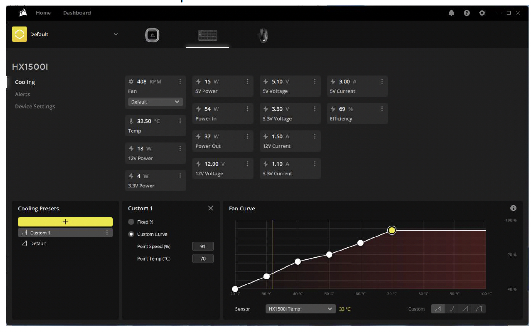 The HXi power supply is supported by Corsair iCUE software, although you really don't need to use it at all. As you will see later in the review, Corsair have pretty much nailed the fan profile at default settings.