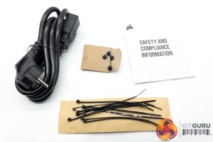 Corsair include a regional specific power connector, some user documentation, 10x cable ties and some mounting screws.