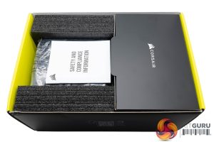 Inside the main box we find two sections. One with the power supply itself sandwiched between foam panels and the other home to the cables and accessories.