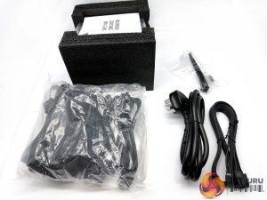 The majority of the supplied cables are flat ribbon style for ease of routing during the build phase. Corsair also supply cable ties, a regional specific power cable and screws for mounting. The 24-pin main power supply cable is braided as shown in the images above.