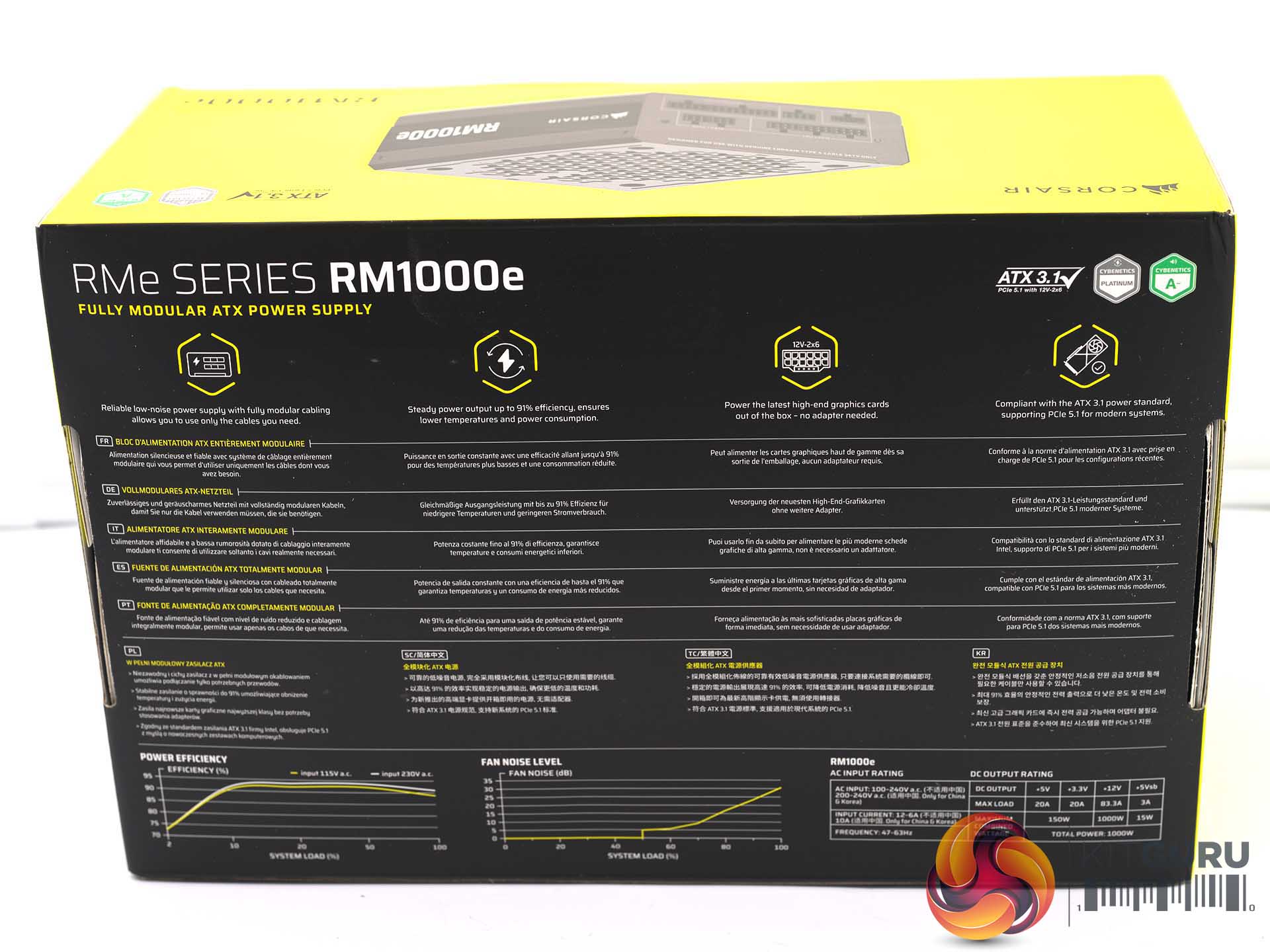 The rear of the box focuses on some key points, such as the new 12V -2×6 cable connectors and it being a ‘reliable low noise' supply. Along the bottom are a few graphs focusing on power efficiency and noise levels.